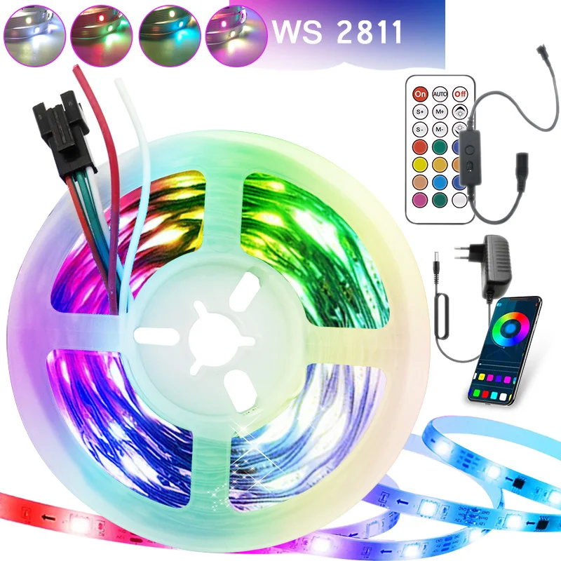 4. Полный комплект Bluetooth: Светодиодная лента * 24key(2835 и 5050) 21key(WS2811) bluetooth контроллер * разъем * Питание supply.