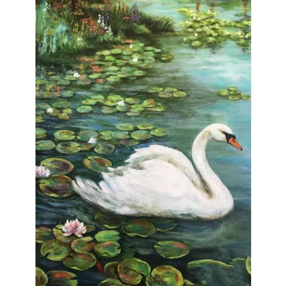Алмазная живопись по номерам Озеро Лебедь утки потоки вышивка крест...