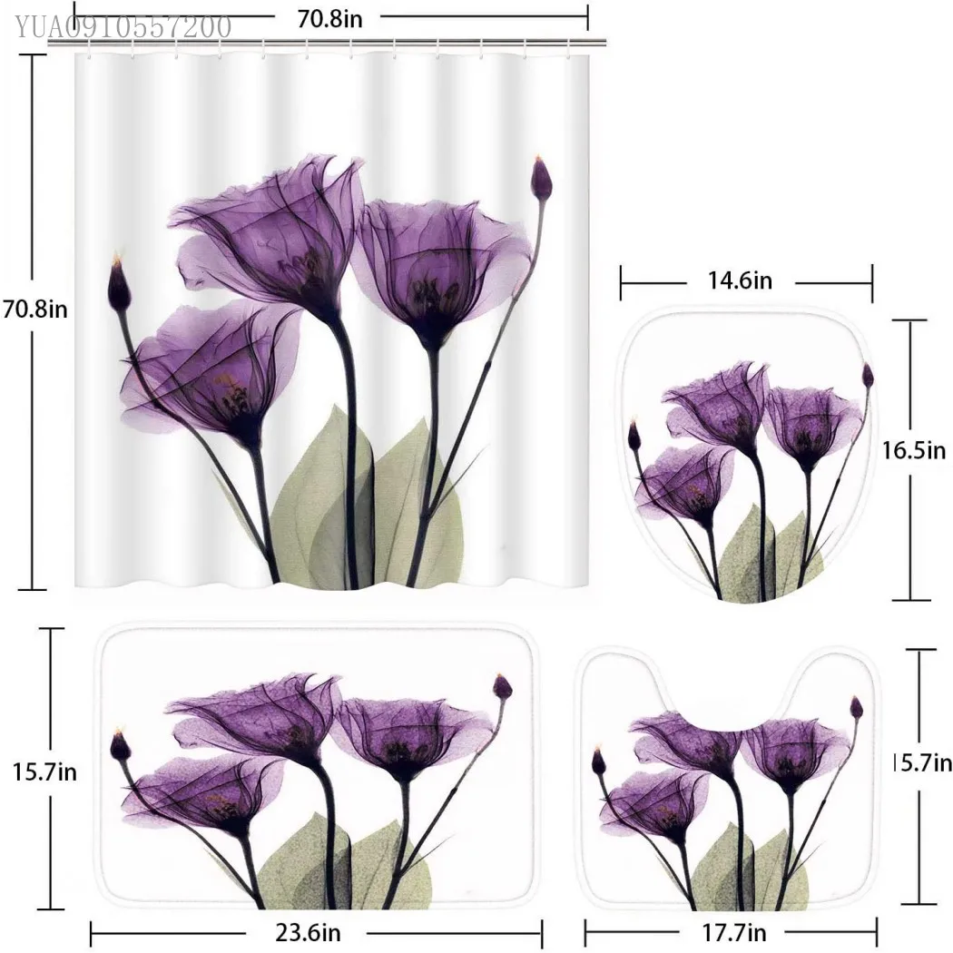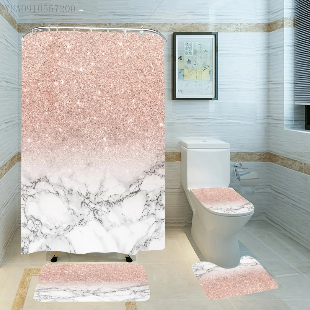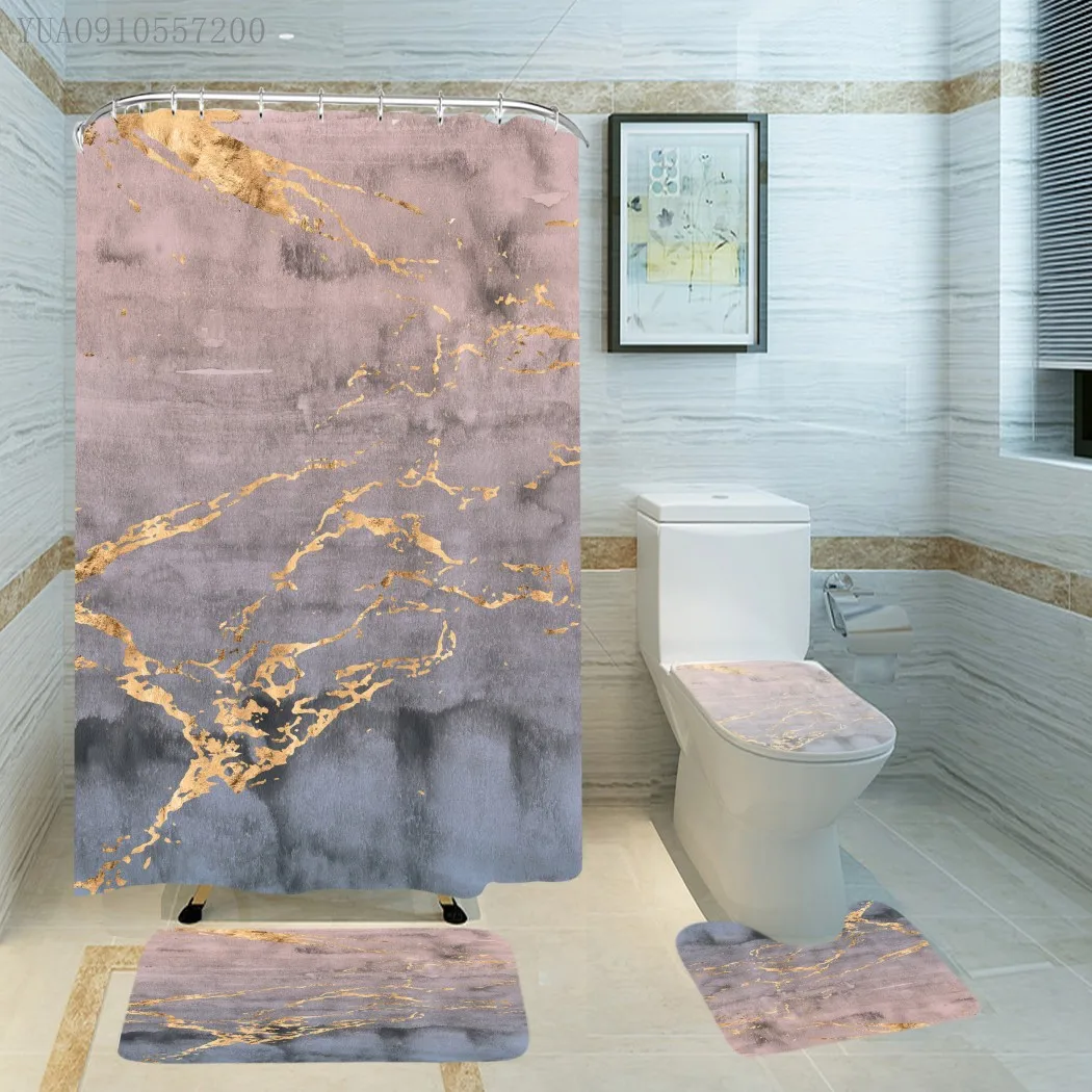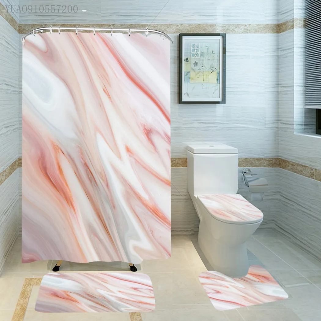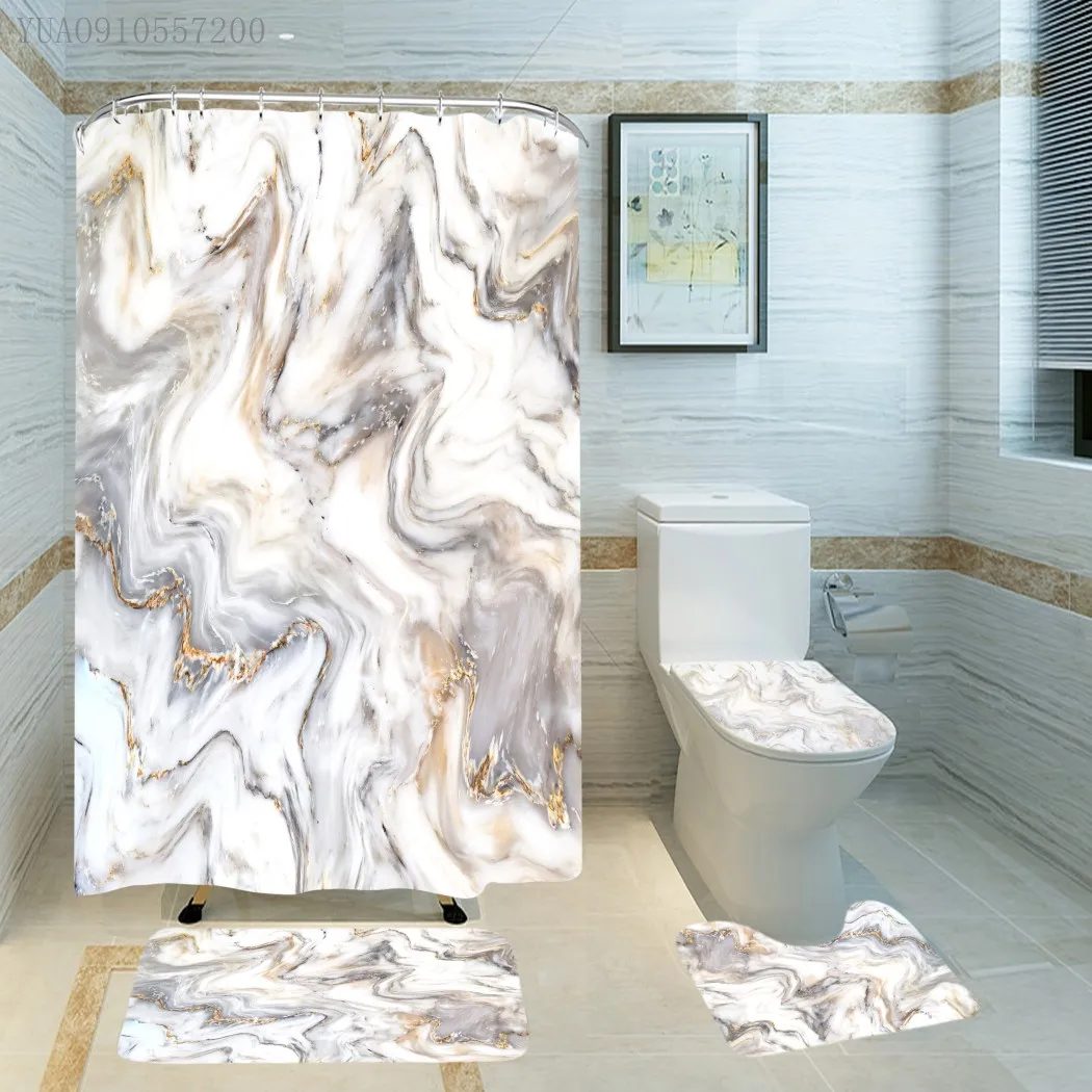 Современная занавеска для душа с мраморным принтом, 4 предмета, чехол для ковра, чехол для унитаза, коврик для ванной, набор роскошных занавесок для ванной комнаты с 12 крючками для дома