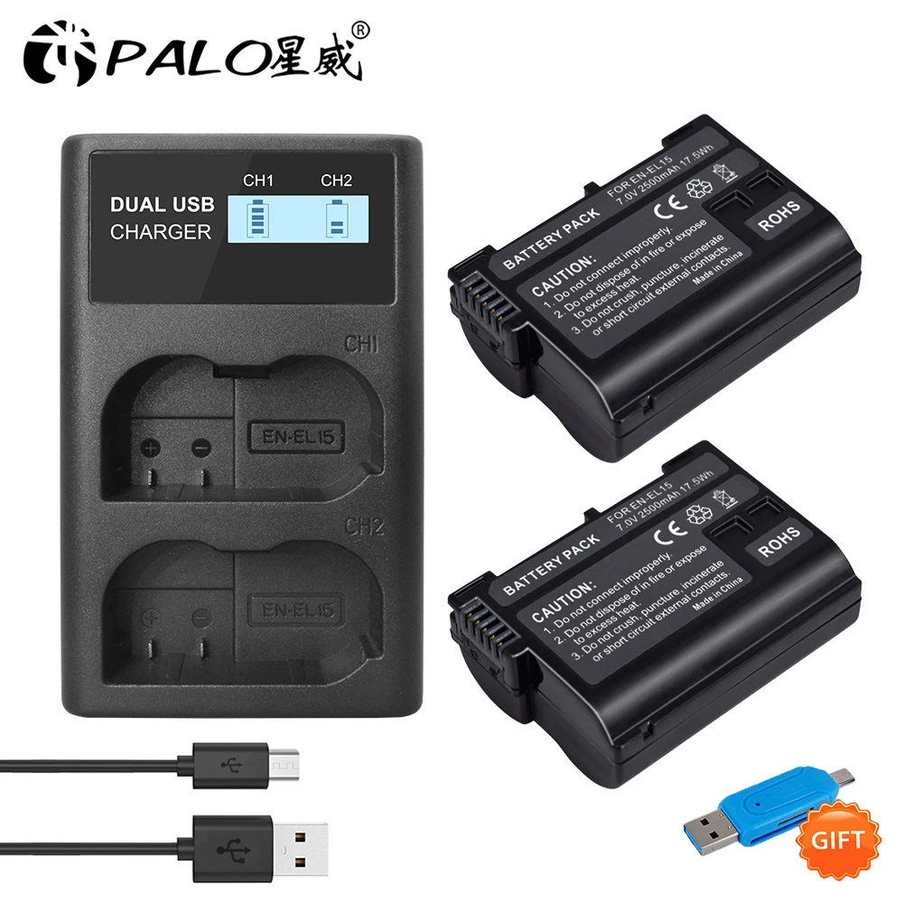 Аккумулятор PALO EN EL15 EN-EL15A ENEL15 EN-EL15, зарядное устройство USB с ЖК-дисплеем для Nikon D500, D600, D610, D750, D7000, D7100, D7200, D800, D800E, D