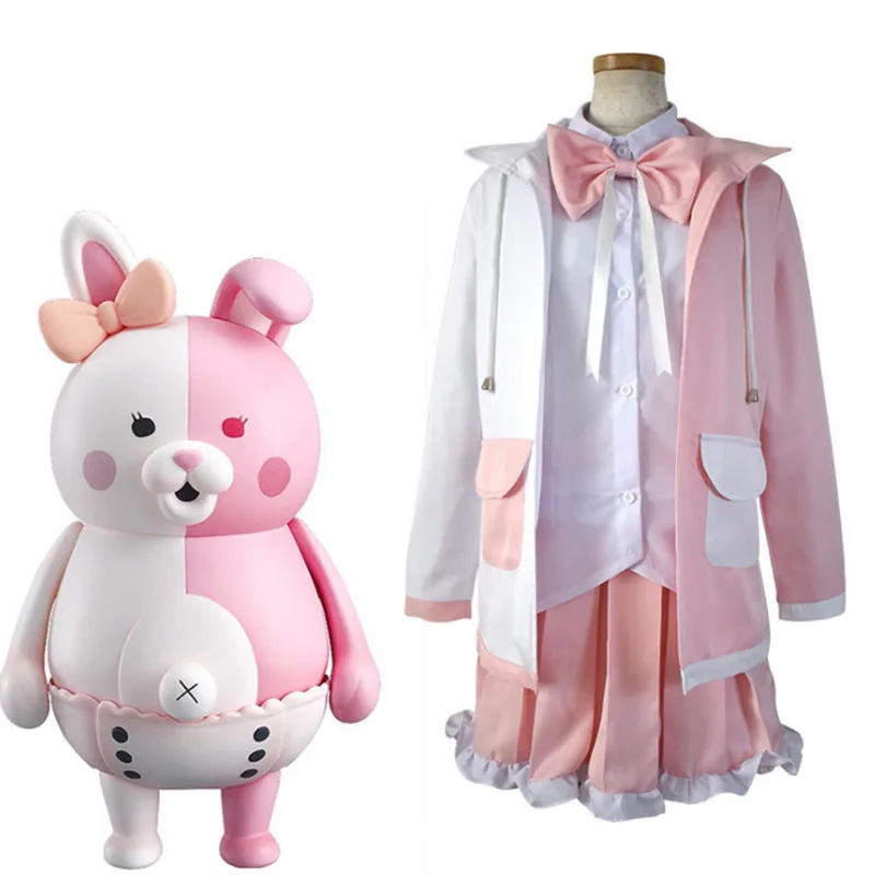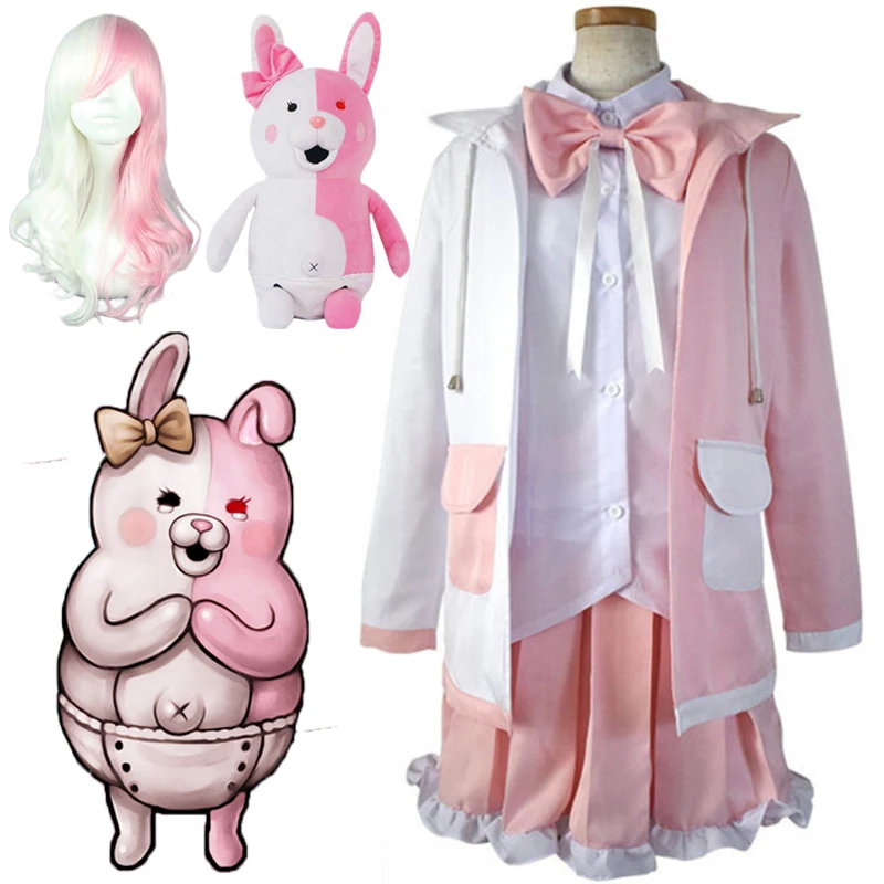 Костюм для косплея медведь из Dangan Ronpa Monomi, школьная форма JK из розового длинного парика, костюм с курткой с капюшоном и юбкой для девочек, рубашка, парики