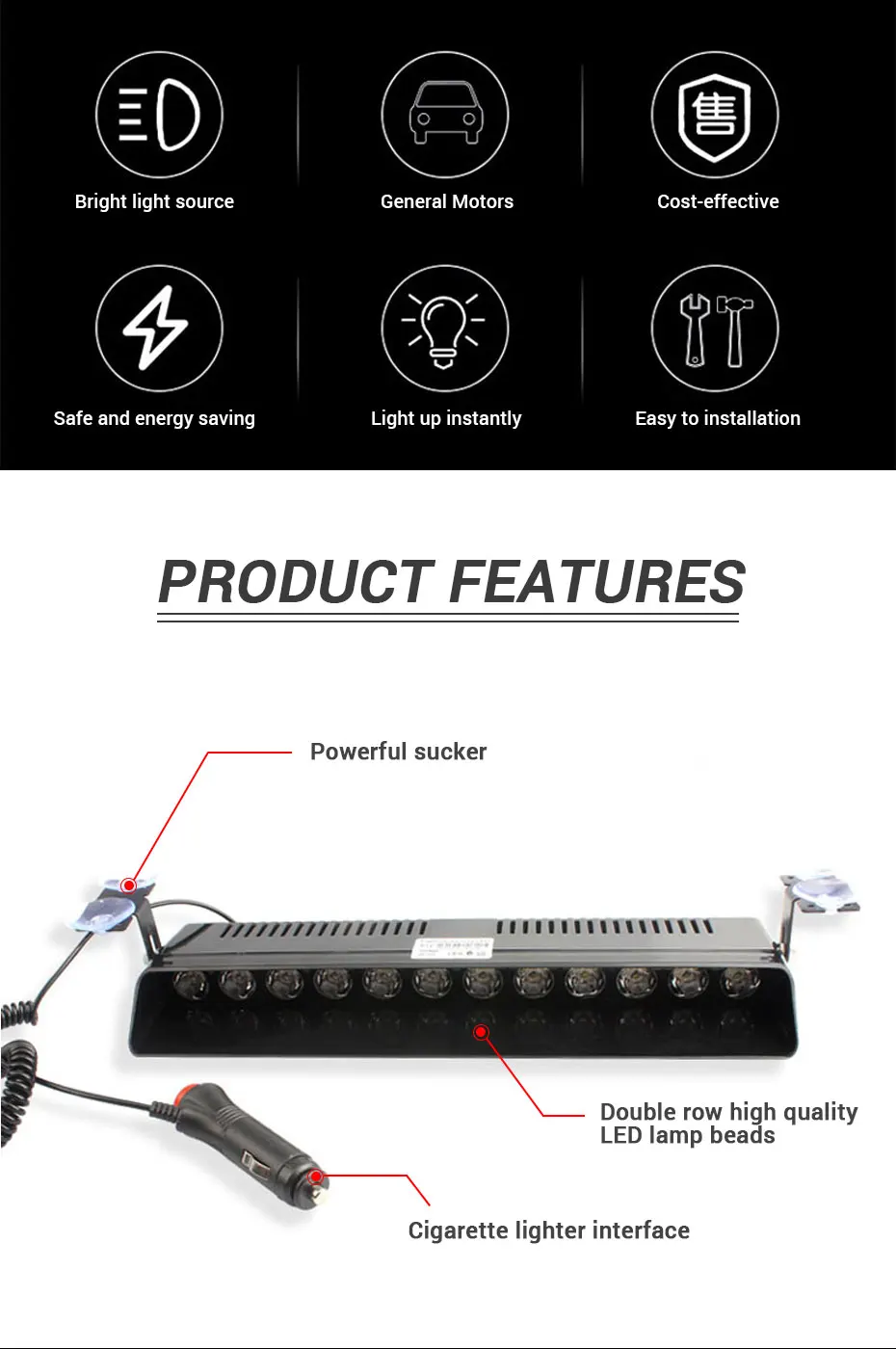 12V автомобильный Грузовик аварийный мигатель лобовое стекло стробоскоп Предупреждение лампа Дневной пробежки светодиодный свет для полиции 12 Led Стробоскоп желтый красный