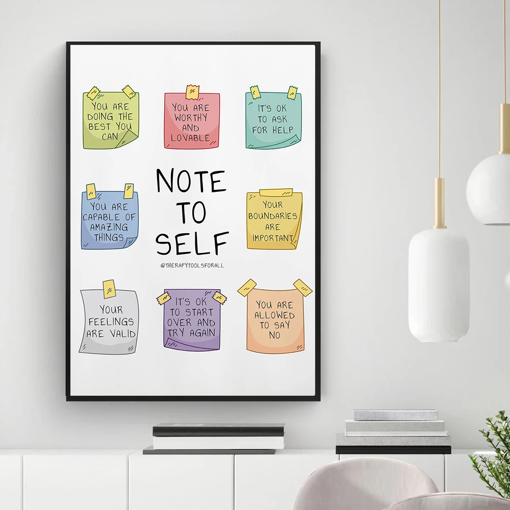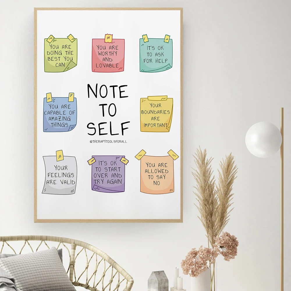 Постер с надписью Note to Self на тему умственного здоровья, Вдохновляющие картины на стену в скандинавском стиле для гостиной, домашний декор без рамки