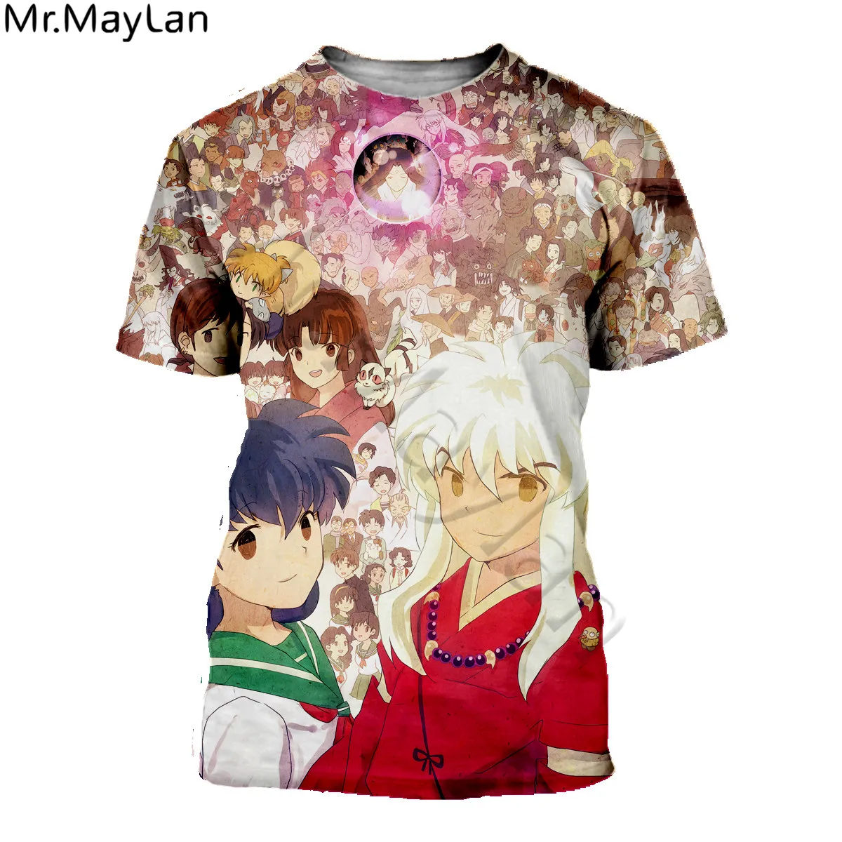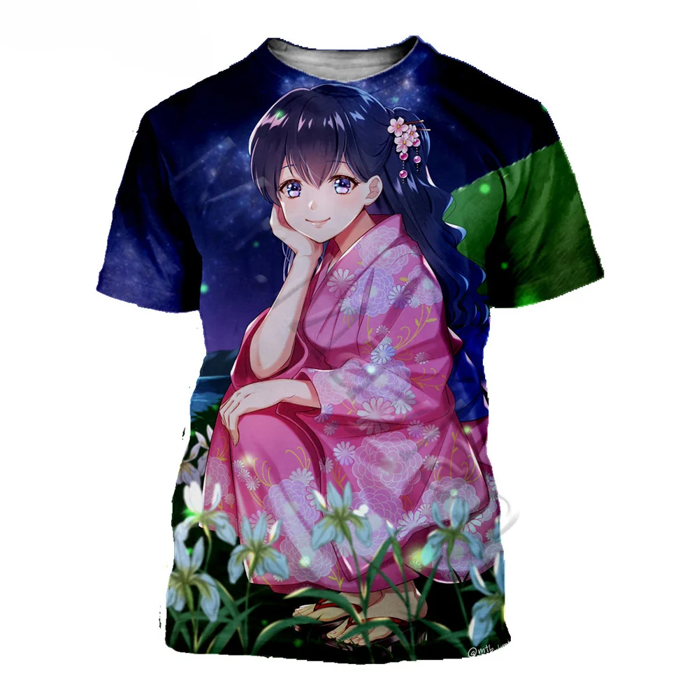 Горячая Harajuku Inuyasha футболка 3D мужские футболки с принтомженская модная повседневная Уличная одежда с О-образным вырезом Футболка прямого кроя; homme; Для девочек; Розовая Одежда Топы