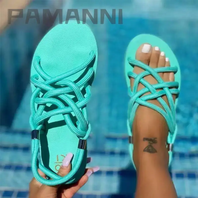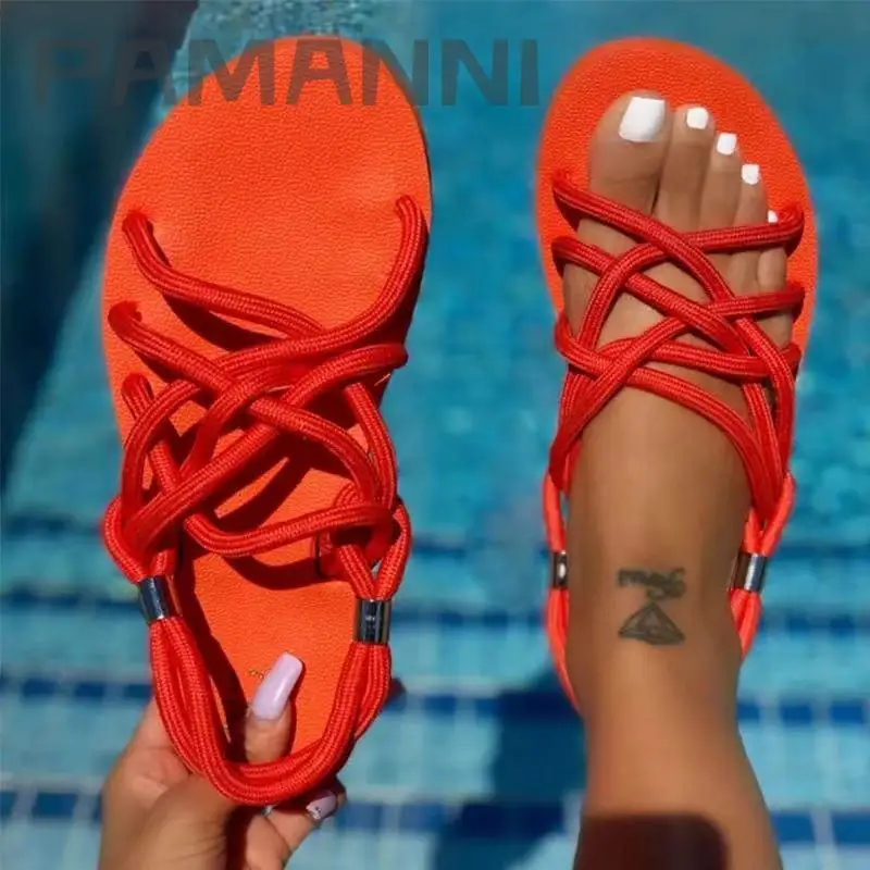 Сандалии PAMANNI женские пляжные, удобные плетеные босоножки, повседневная обувь на плоской подошве, шнуровка, сланцы, весна-лето
