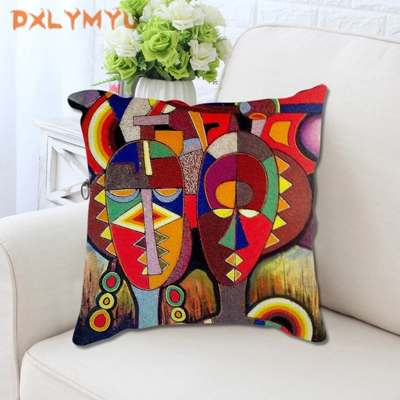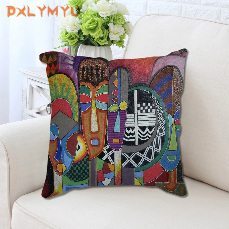 Наволочка из хлопка и льна с Африканским абстрактным портретом и HD...