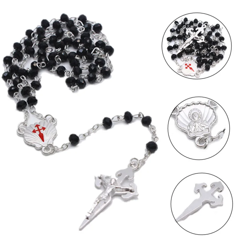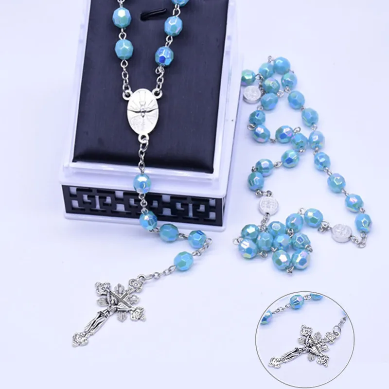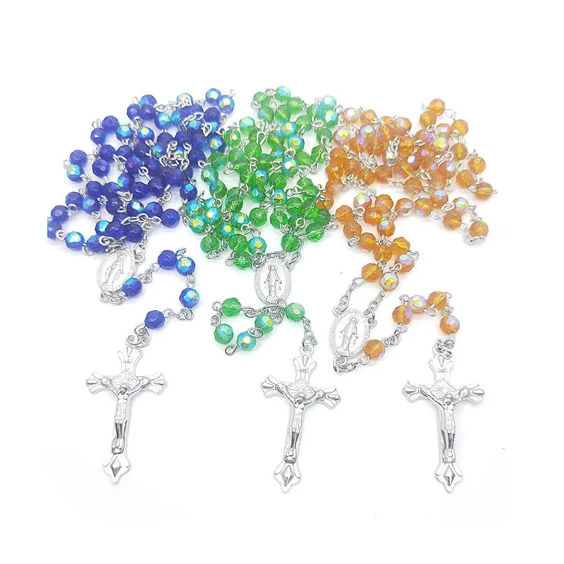 Цепочка с подвеской-крестом для мужчин и женщин, ожерелье с крестом Мадонны, Христовой четки, хрустальные бусины, католическая молитва, бижутерия, Розарий, 6 видов