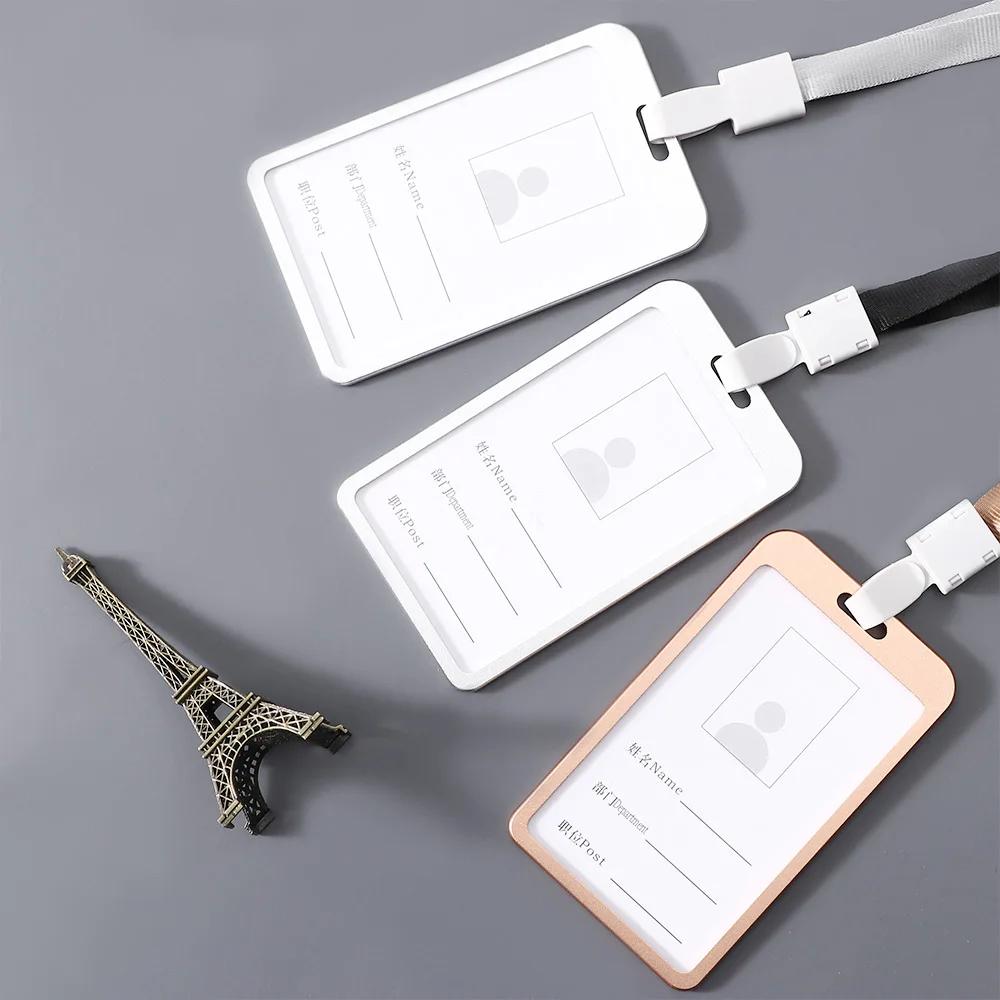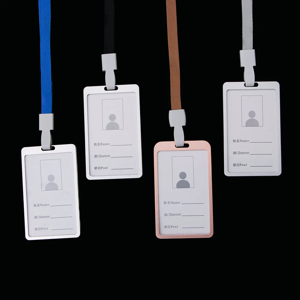 Алюминиевый Карманный держатель для кредитных карт унисекс, чехол с ремешком на шею и бейджем для удостоверения личности, офисные принадлежности