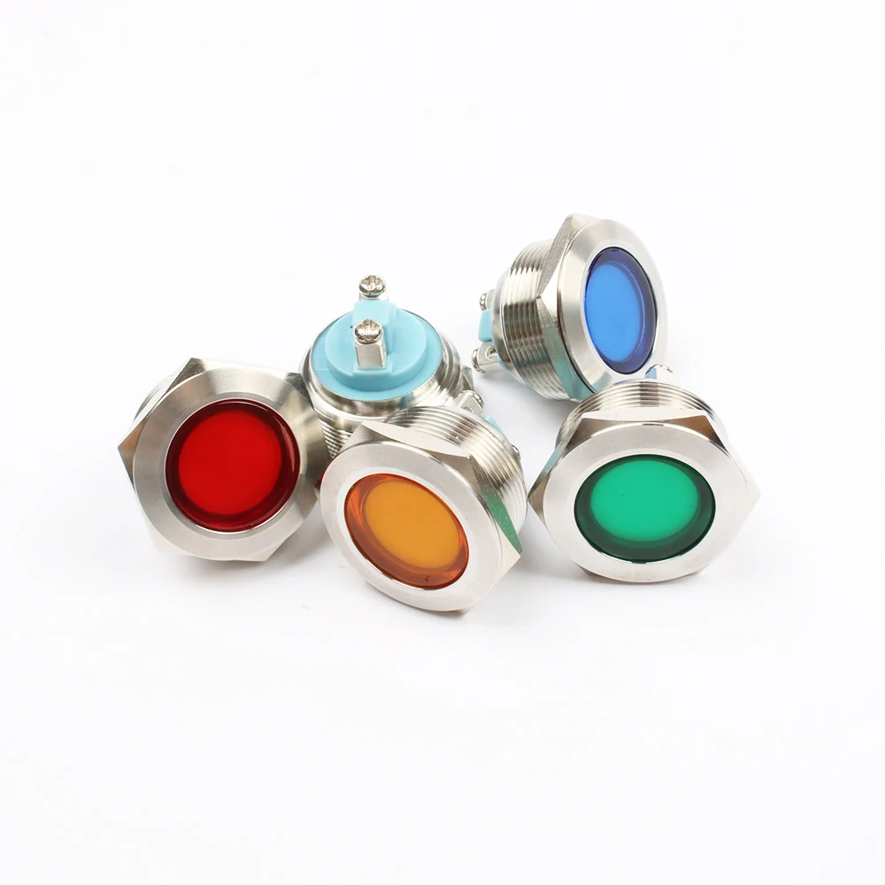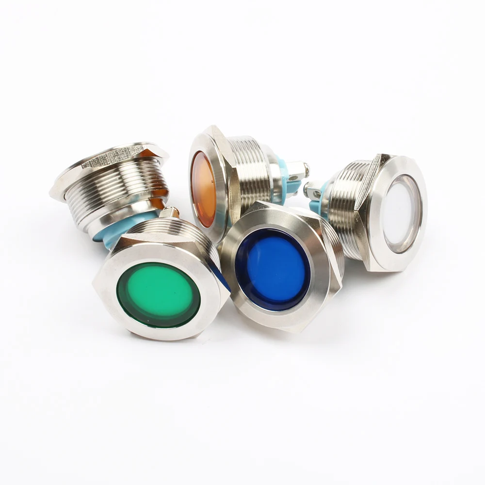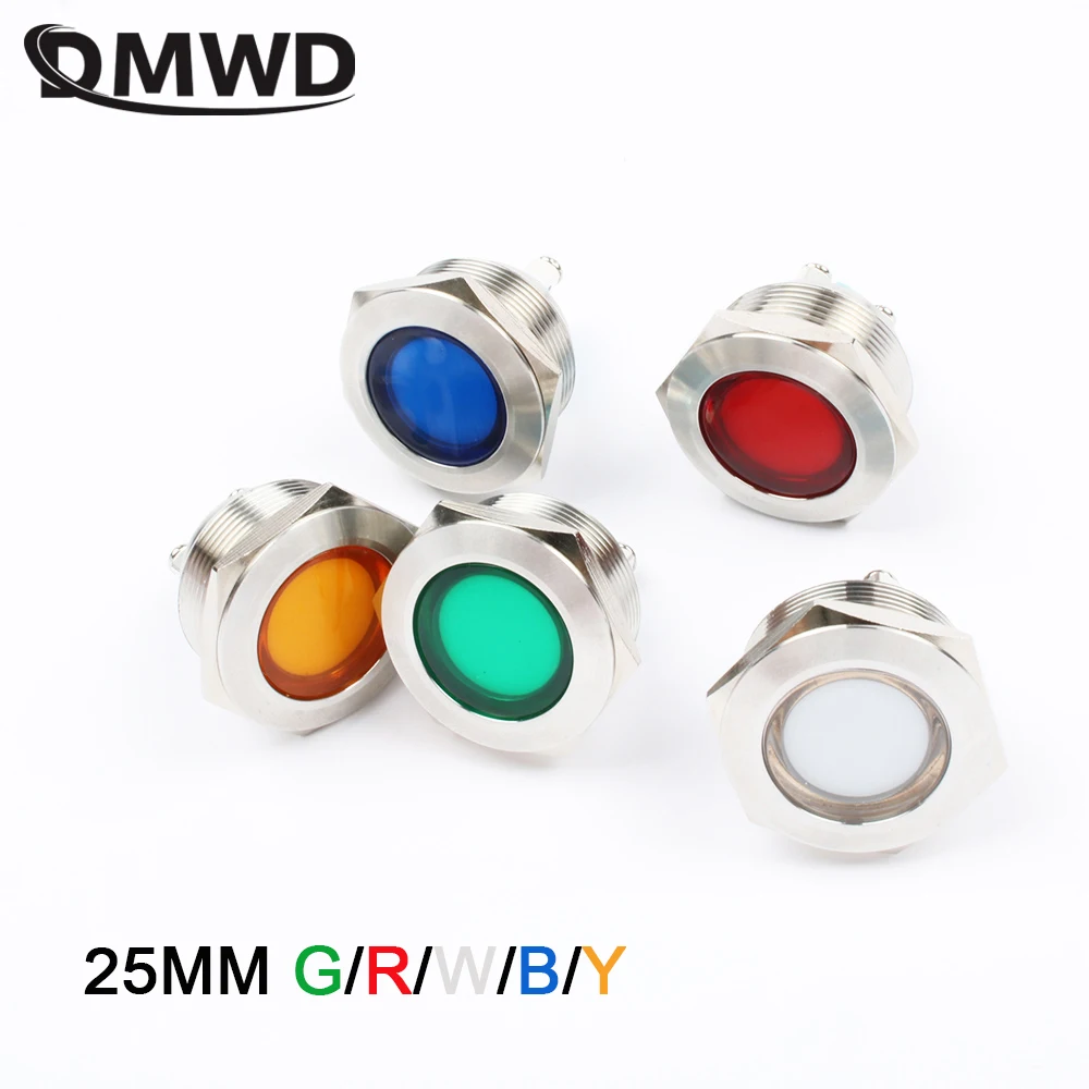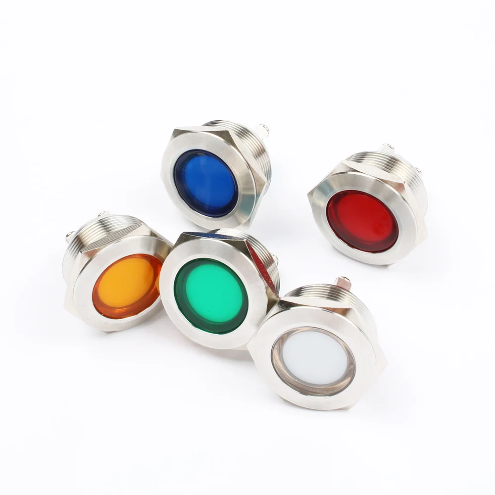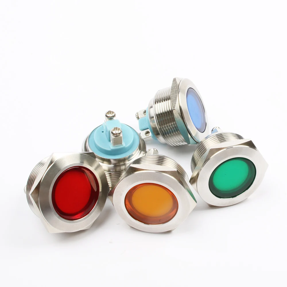 1 шт., плосветильник кругласветильник сигнальная лампа 25 мм светодиодный металлический индикатор, 3 в, 6 в, 12 В, 24 В, 220 В, винтовое подключение, красный, желтый, синий, белый