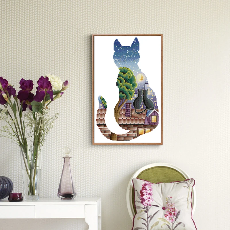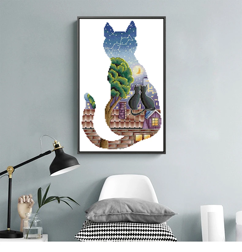 Кошка diy вышивка крестиком наборы 14CT подсчет печатных парусиновая обувь белого цвета; Ткань для животных ручной рукоделие вышивка крестиком рисунком и вышивкой для детей