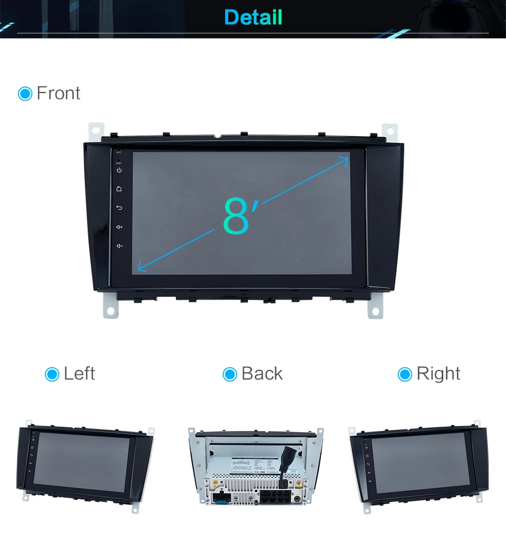 1. Высокое разрешение 1080P: полноёмный сенсорный экран для удобства эксплуатации, хорошо разработанный пользовательский интерфейс только для автомобиля2. Встроенный GPS Прием: пользователи могут приобрести напрямую из play store для автономной навигации. С Wi-Fi подключен, Google Maps может использоваться идеально, вы можете пойти куда угодно и никогда не потеряться снова!3. Встроенный WIFI: подключение к WIFI, и вы найдете новый мир, самый удобный-это онлайн-карта.4. Камера заднего вида: необходимо выбрать камеру, автомобиль подключен к обратной передаче для автоматического переключения (требуется дополнительно)5. Управление рулевым колесом: через него вы можете управлять функциями, которые вам нужны, с помощью рулевого колеса, более удобно6. Встроенный Bluetooth 5,0: Поддержка Bluetooth громкой связи, Bluetooth музыкальный плеер, автоматическая загрузка телефонных книг7,8 ''1280*720 супер высокой четкости цифровой экран8. Запись вождения: вы можете выбрать регистратор, и автомобиль имеет воспроизведение, доказательства могут быть сохранены9. Fm-радио: онлайн-музыка, вы можете передавать музыку на автомобильную стереосистему FM, чтобы наслаждаться оригинальным стереозвуком автомобиля10. Поддержка нескольких языков: поддержка языков, до 70 национальных языков11. Вы можете наслаждаться музыкой с вашего мобильного телефона без каких-либо кабелей, а также поддержка USB connetion.