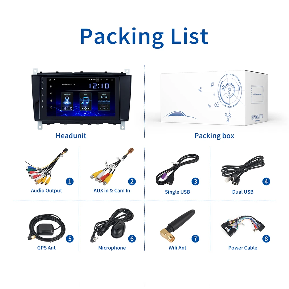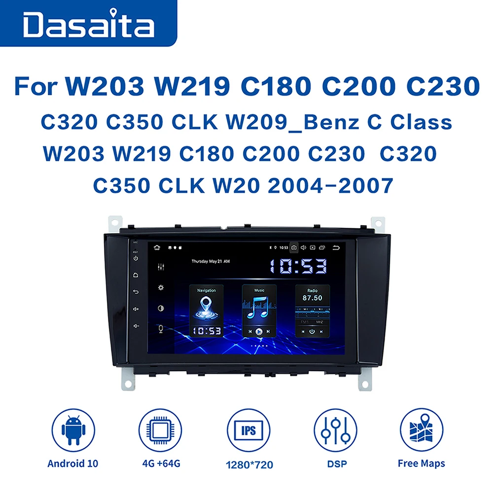 Автомобильная магнитола Dasaita, мультимедийная система на Android 10,0, с 8 "GPS Навигатором, для Benz C Class W203, W219, C180, C200, C230, C320, C350, CLK, W20, 2004-2007, Типоразмер 1 Din