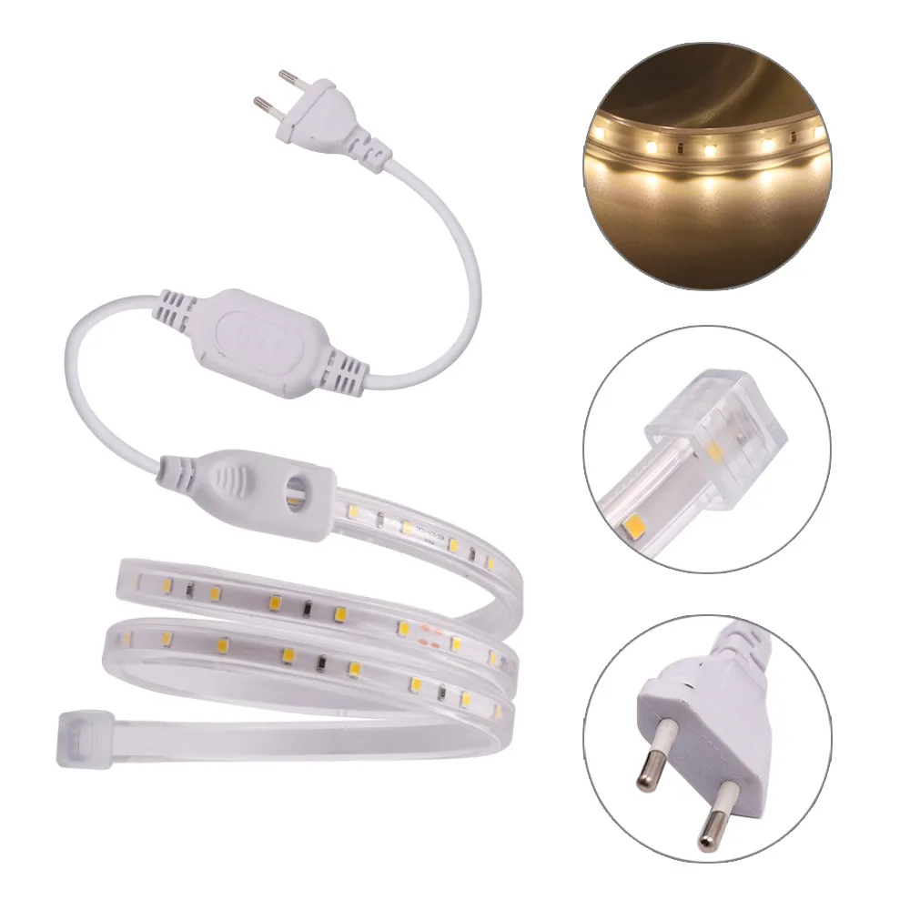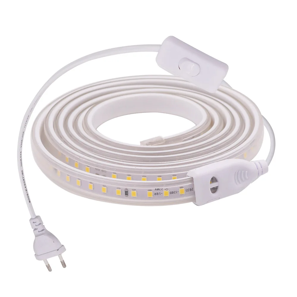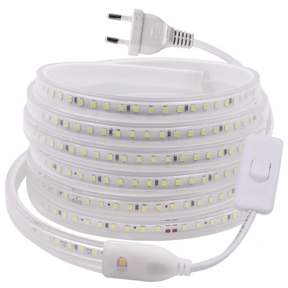 AC 220V Светодиодные ленты SMD 2835 открытый Водонепроницаемый Светодиодная лента 120 светодиодовm Белыйтеплый белый гибкий светодиодный светильник настенный светильник с выключателем