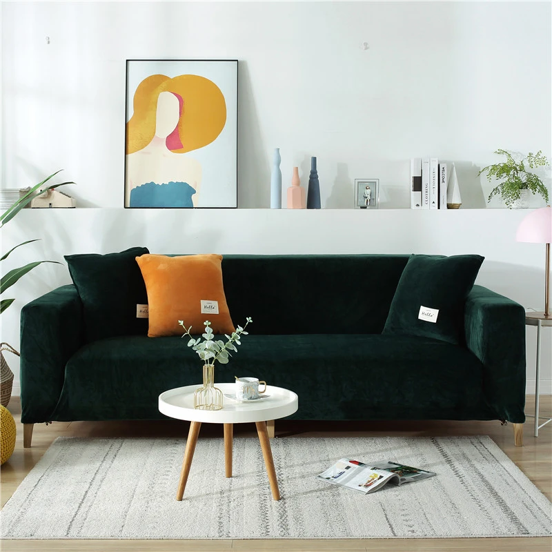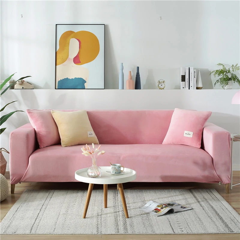 Бархатный плотный плюшевый L-образный чехол для дивана в гостиную, эластичный однотонный чехол для дивана, шезлонг, угловой растягивающийся чехол для дивана