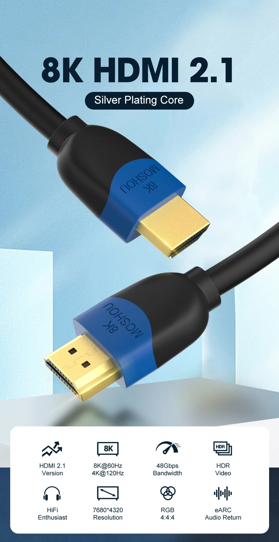 HDMI-кабель Moshou 8K HDMI 2,1 провод для Xiaomi Xbox PS5 RTX 3080 ...