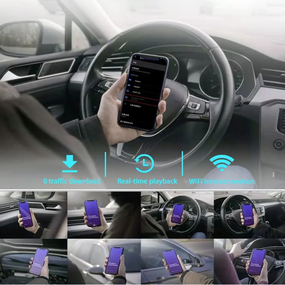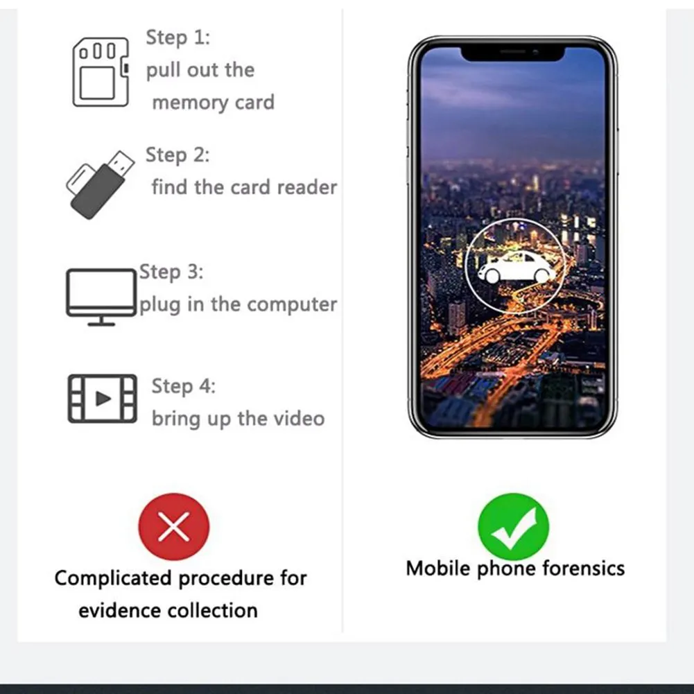 Мобильное приложение интеллектуально взаимосвязано, и нет необходимости выполнять утомительные операции на диктофоне, чтобы избежать таких проблем, как Застревание/сбой/Экранирование зеркала заднего вида.