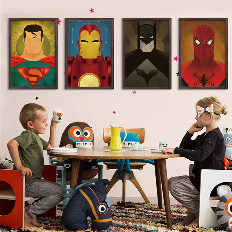 Винтажный аниме постер Marvel, Капитан Америка, Железный человек, минималистичные картины на холсте для детской комнаты, настенный художественный Декор