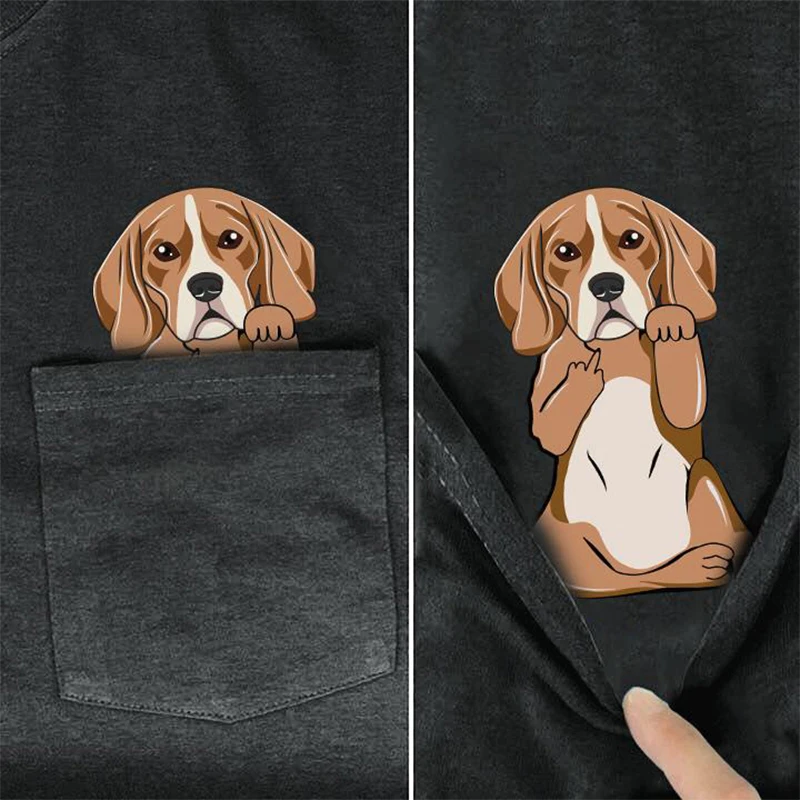 Хлопковая футболка CLOOCL, модная футболка с принтом Бигля и карманов, мужские и женские рубашки, повседневные топы в стиле Харадзюку, хлопковые футболки