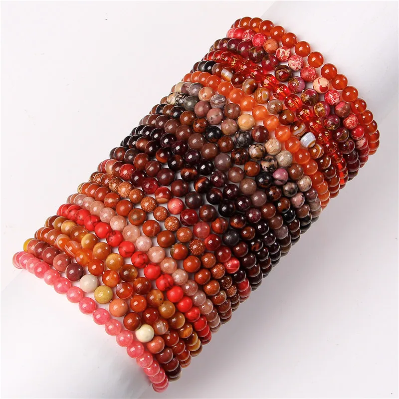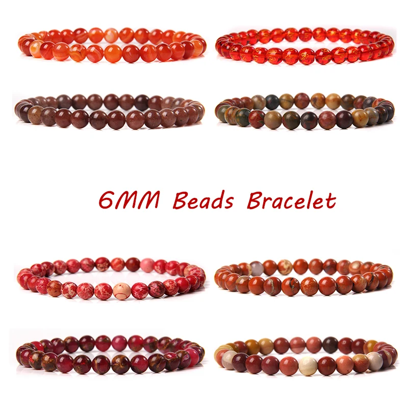 Браслет эластичный женский и мужской из Красного камня, браслеты с бусинами из натурального камня, ювелирные изделия с кристаллами рейки, нефритовые Агаты, 6 мм