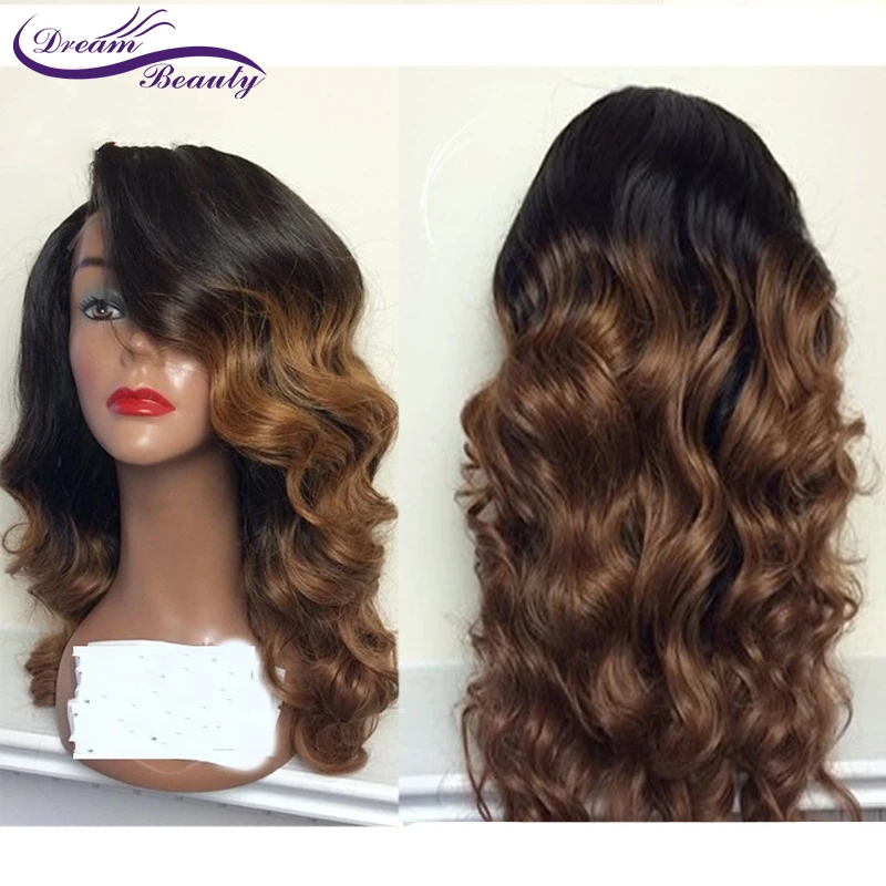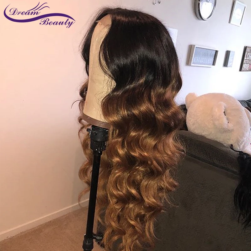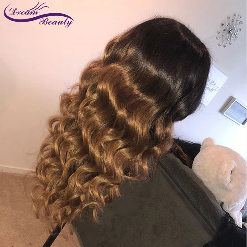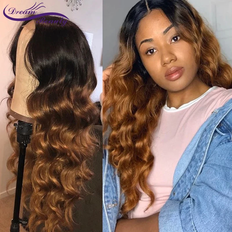 Парики из коричневых человеческих волос с эффектом омбре, 13x4, парики на сетке спереди для женщин, парик из человеческих волос без повреждений, волнистые парики, собранные, мечта, красота