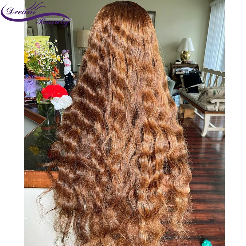 Парики из натуральных волос оранжевого имбиря, глубокая волна, 180%...