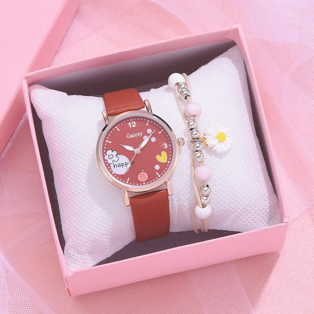 Часы Детские кварцевые для студенток, розовый кожаный ремешок, пода...