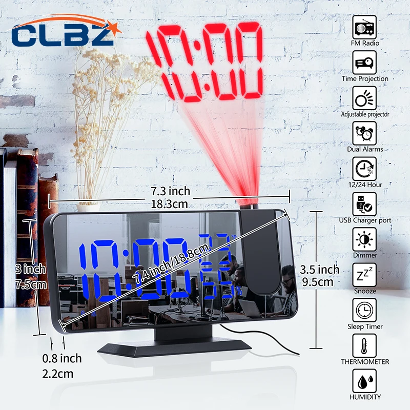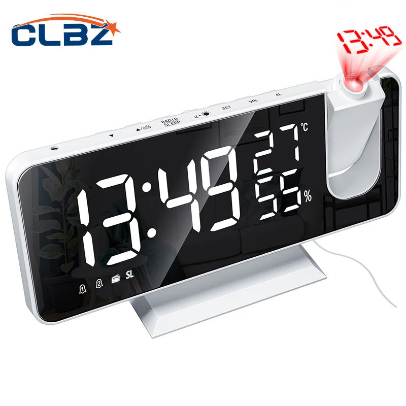 Светодиодный цифровой будильник, часы, прикроватный стол, электронные настольные часы, USB пробуждение, FM-радио проектор, функция повтора, 2 будильника