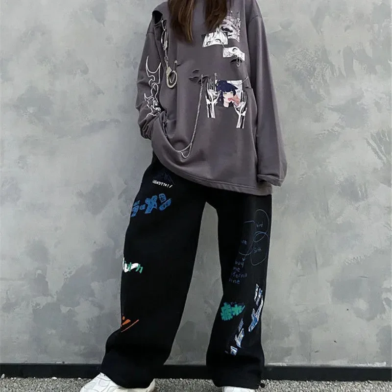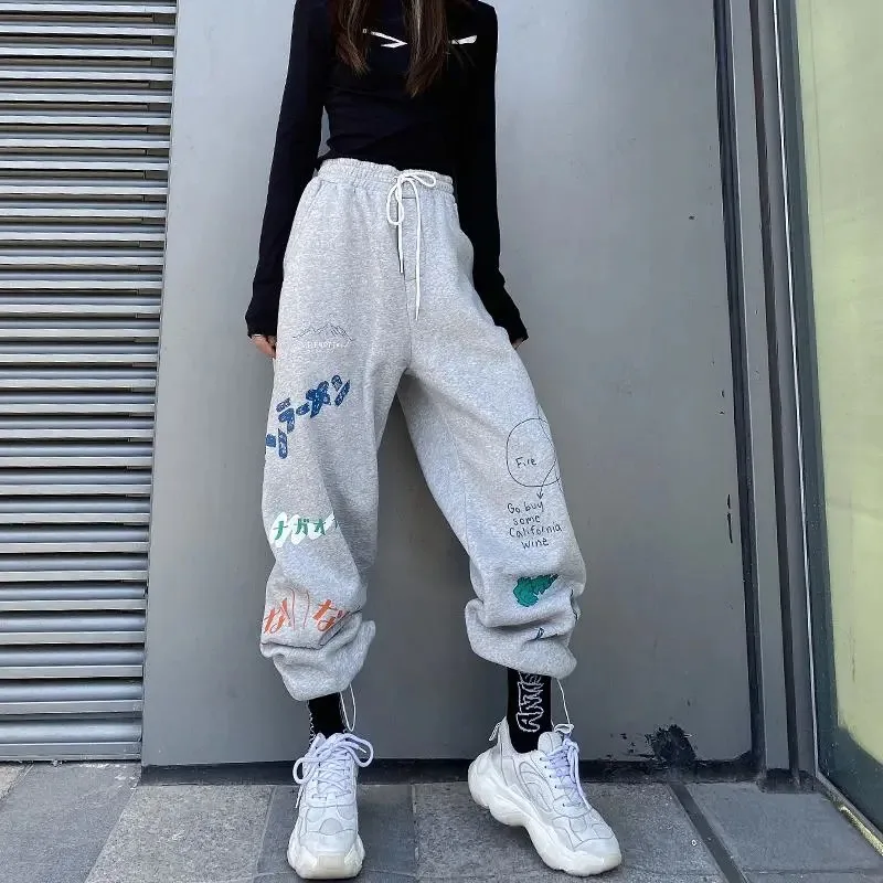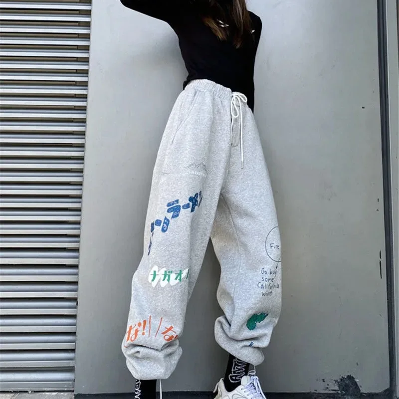 Брюки женские свободные, с высокой талией, в стиле хип-хоп