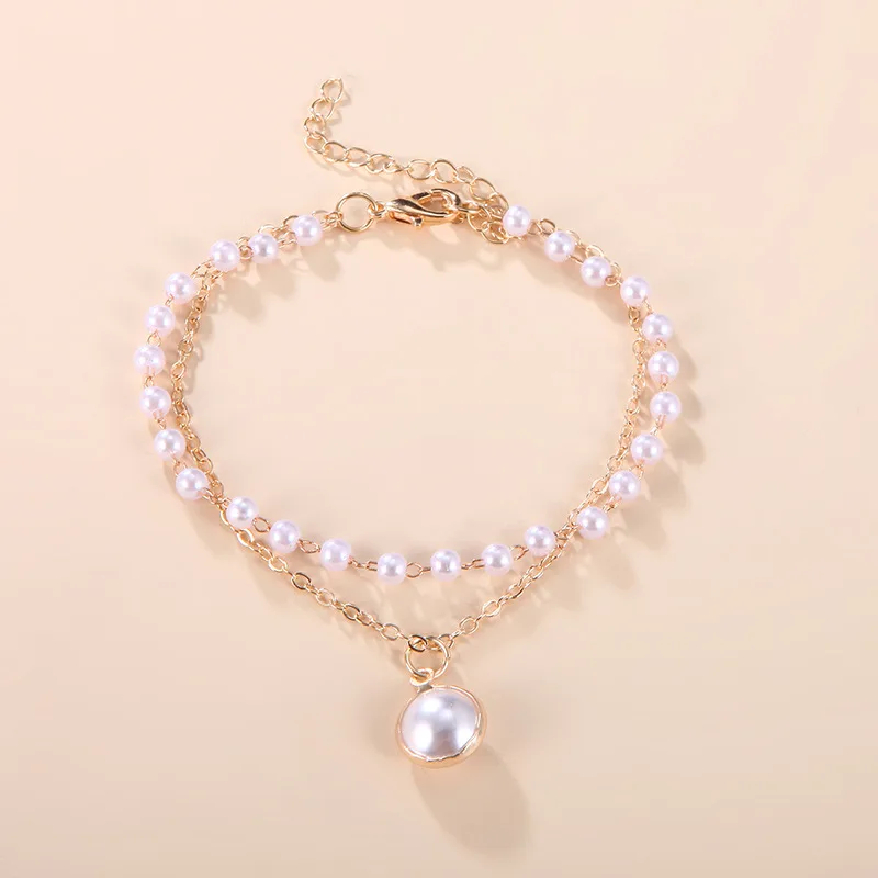 Браслет женский двухслойный с имитацией жемчуга, простой модный сет...