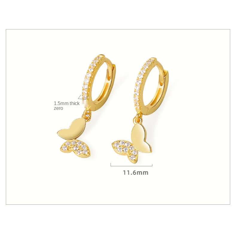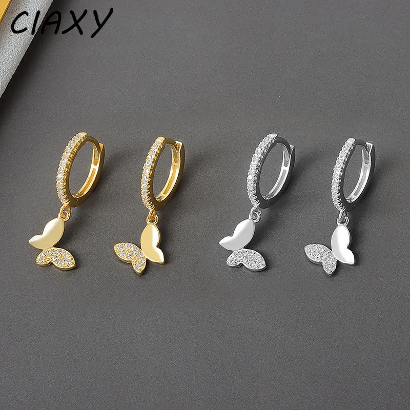 Серьги-кольца женские из стерлингового серебра 925 пробы с цирконием, с подвеской в виде бабочки, серьги с застежкой