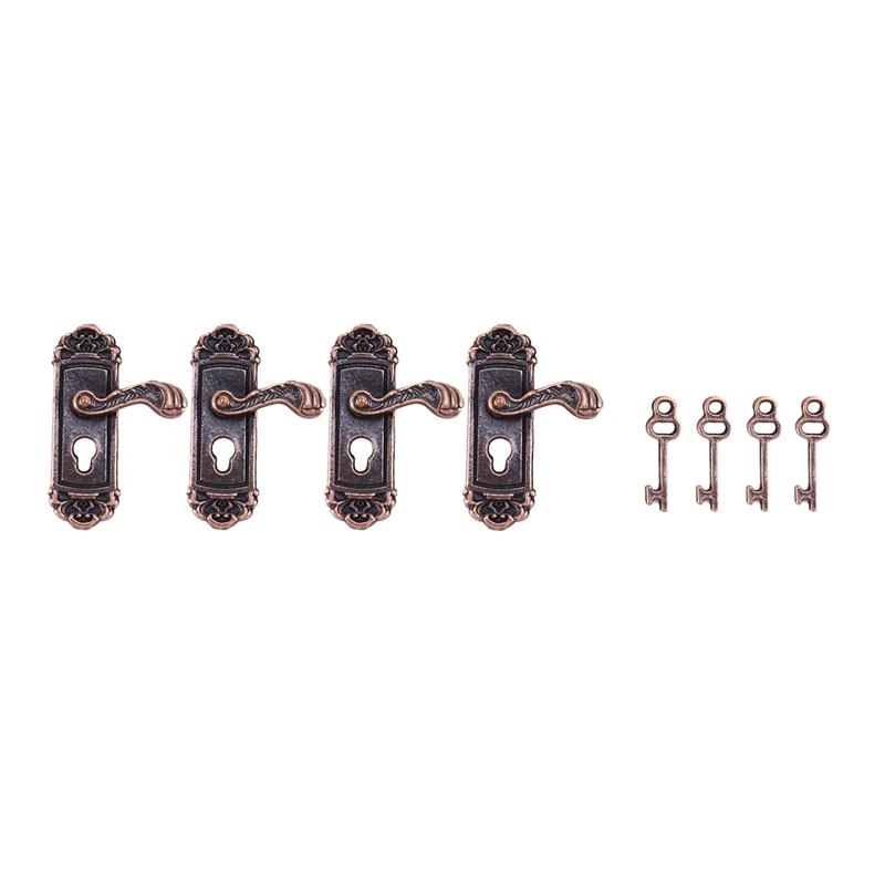 Дверной замок для кукольного домика, миниатюрный замок в стиле ретро 1:12, аксессуары для кукольного домика, с правой ручкой, 4 шт.