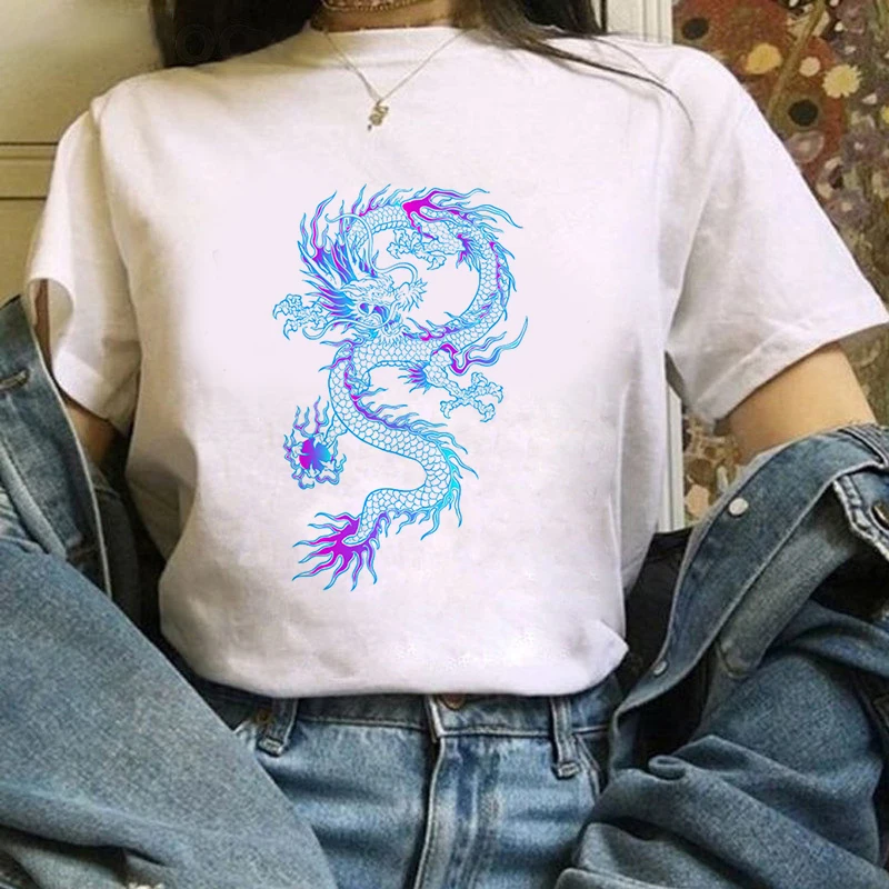 Женские топы с принтом китайского дракона, футболка в стиле Харадзюку с принтом оленя, винтажные хлопковые футболки оверсайз, Y2k, новинка 2021