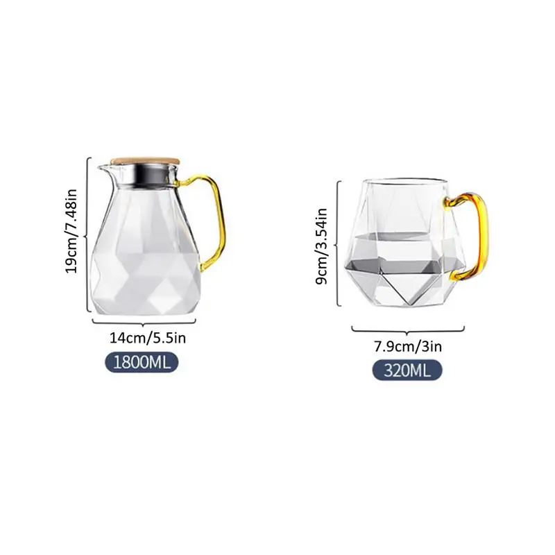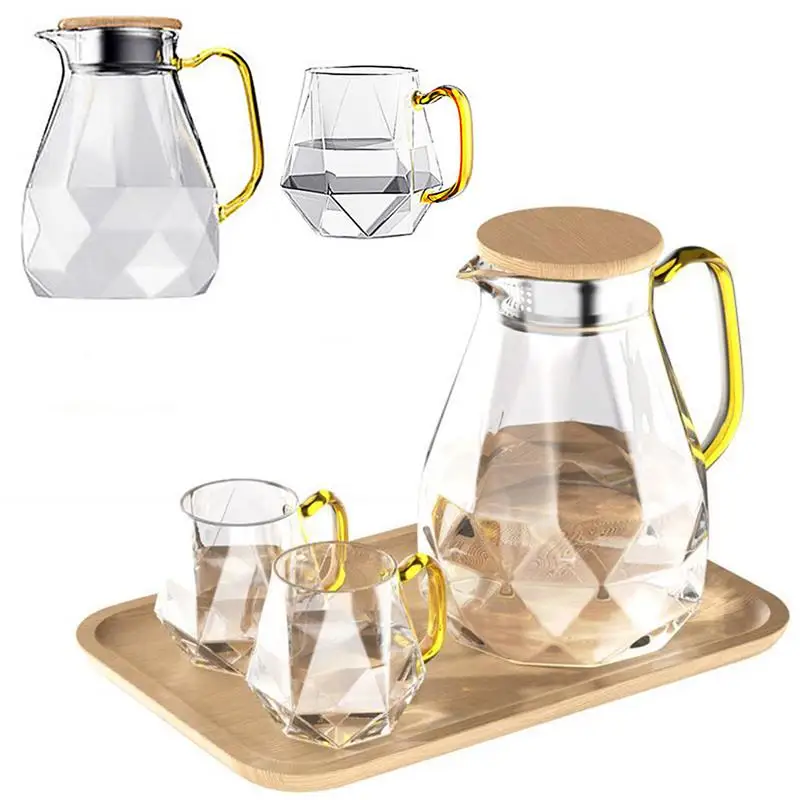 Стеклянный чайник,Прозрачный стеклянный чайник,Чайник с алмазной текстурой,Бутылка для воды,Чашки для воды,Термостойкая бутылка для воды,