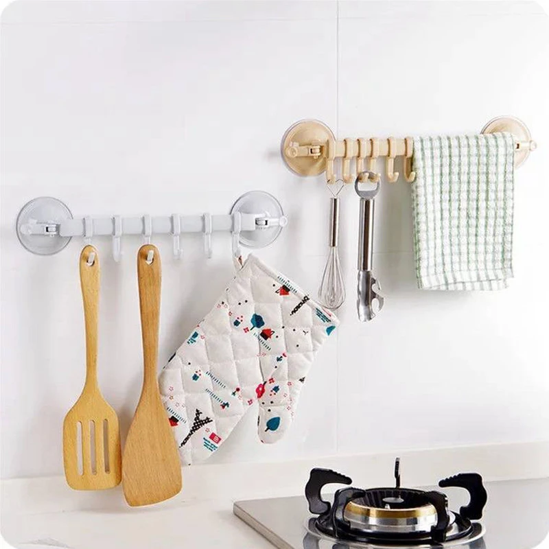 6 присосок с крючками, без гвоздей, кухонная стена без следов, веша...