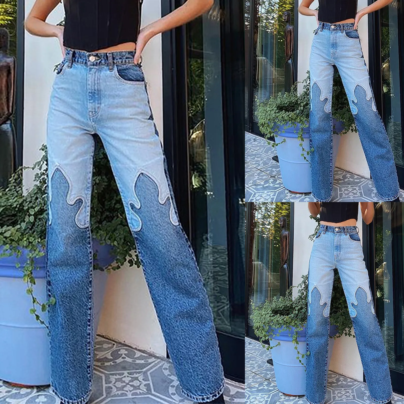 Винтажные лоскутные джинсы y2k, женские брюки DA Harajuku, уличная одежда с высокой талией, модные джинсовые мешковатые брюки с градиентом цвета для женщин