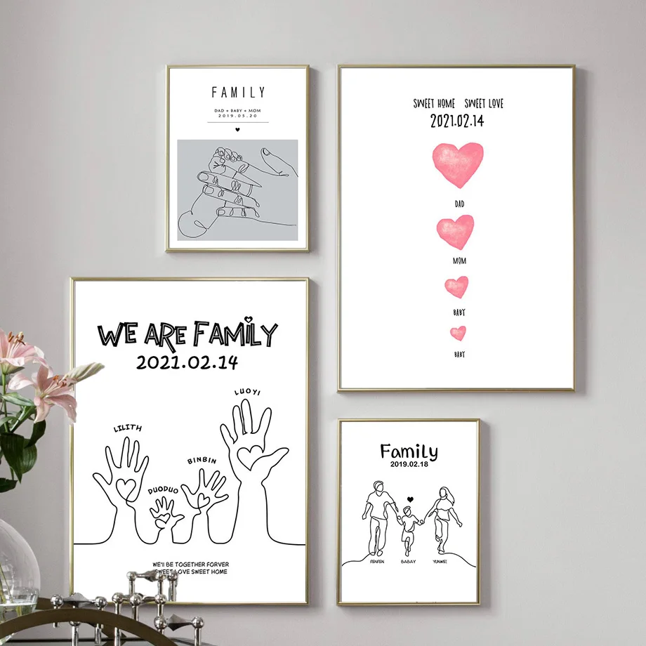 Персонализированный милый настенный постер с датой на годовщину семьи, печатное название, Картина на холсте, индивидуальный подарок сделай сам, домашний декор, гостиная