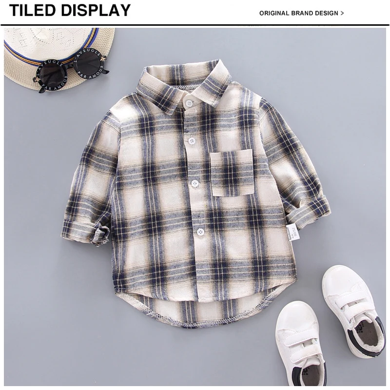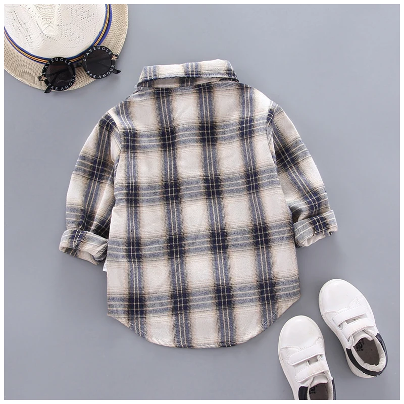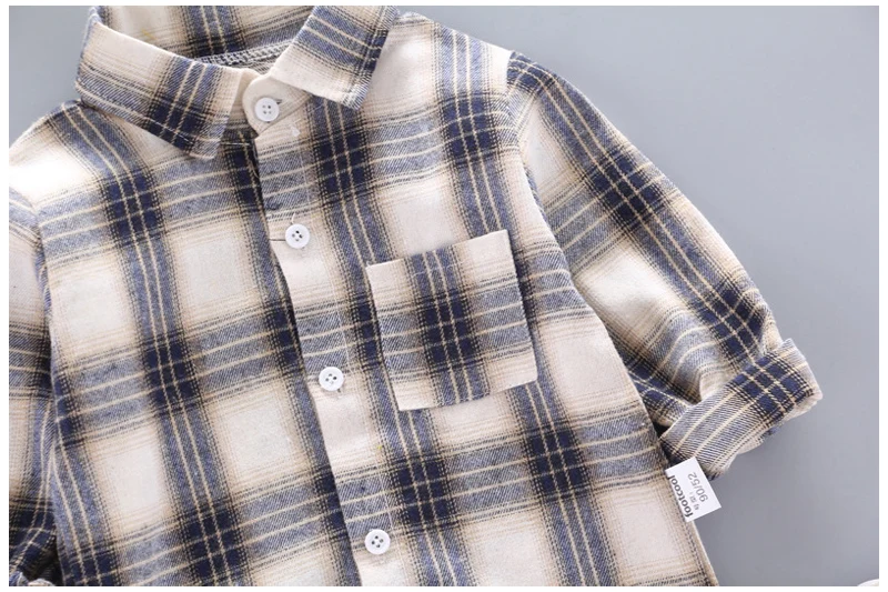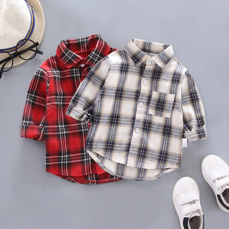 Рубашка для малышей, тонкая одежда, весенняя одежда, хлопковые топы в клетку для маленьких мальчиков От 1 до 4 лет, Детская рубашка с длинными рукавами одежда для малыша