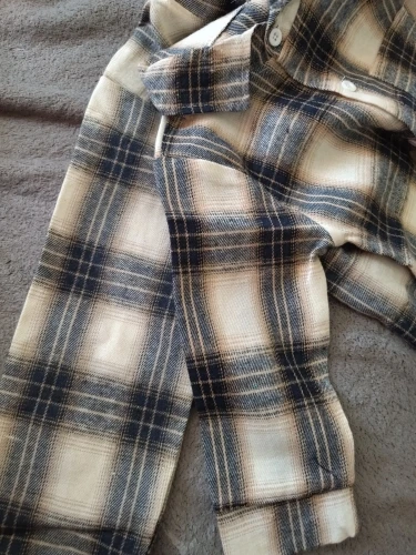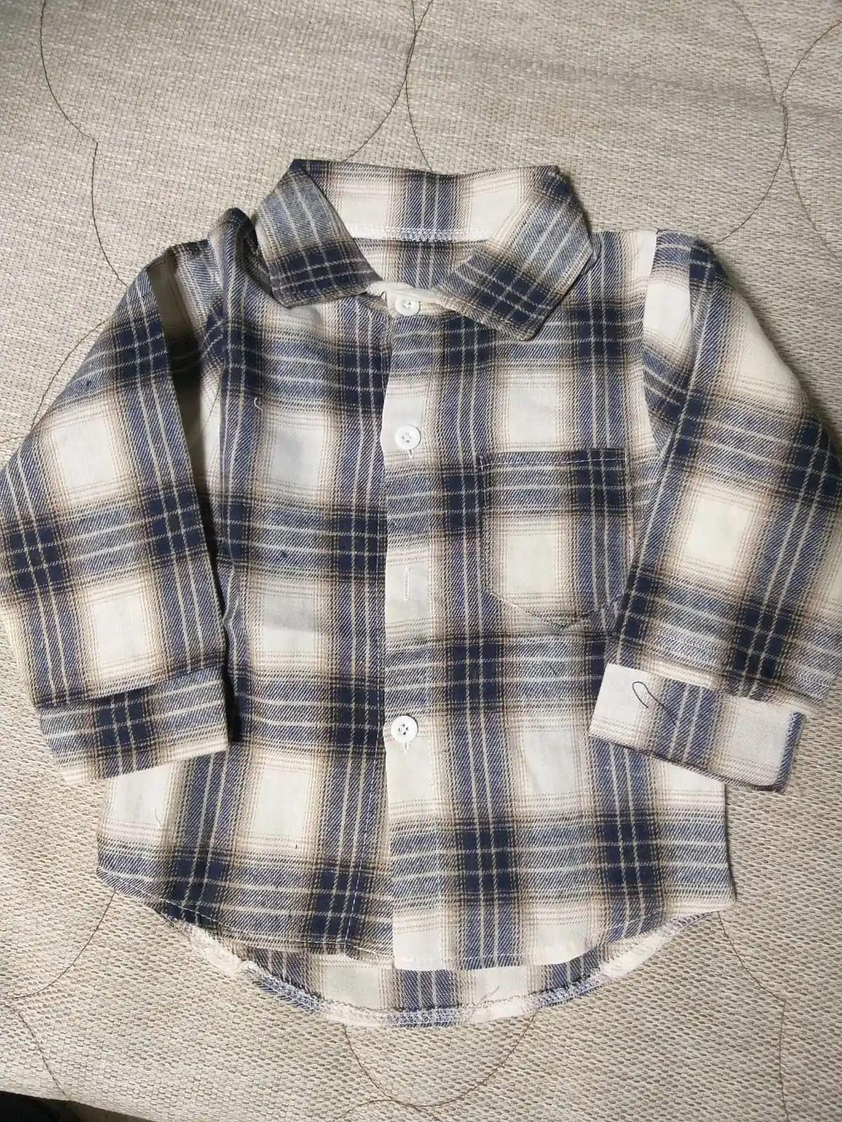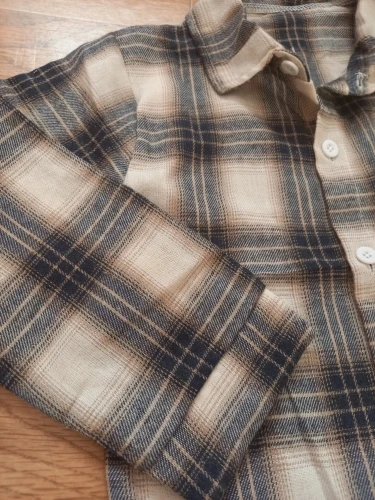 Вещь хорошо подходит для выхода в свет рубашки. Карман почти в середине рубашки, но он не будет использовать его, так что мне все равно. Цвет приятный, коричневый и нейтральный. Идеально подходит. Получил Размер 2 для 1 1/2 лет. Пуговицы пришиты хорошо.