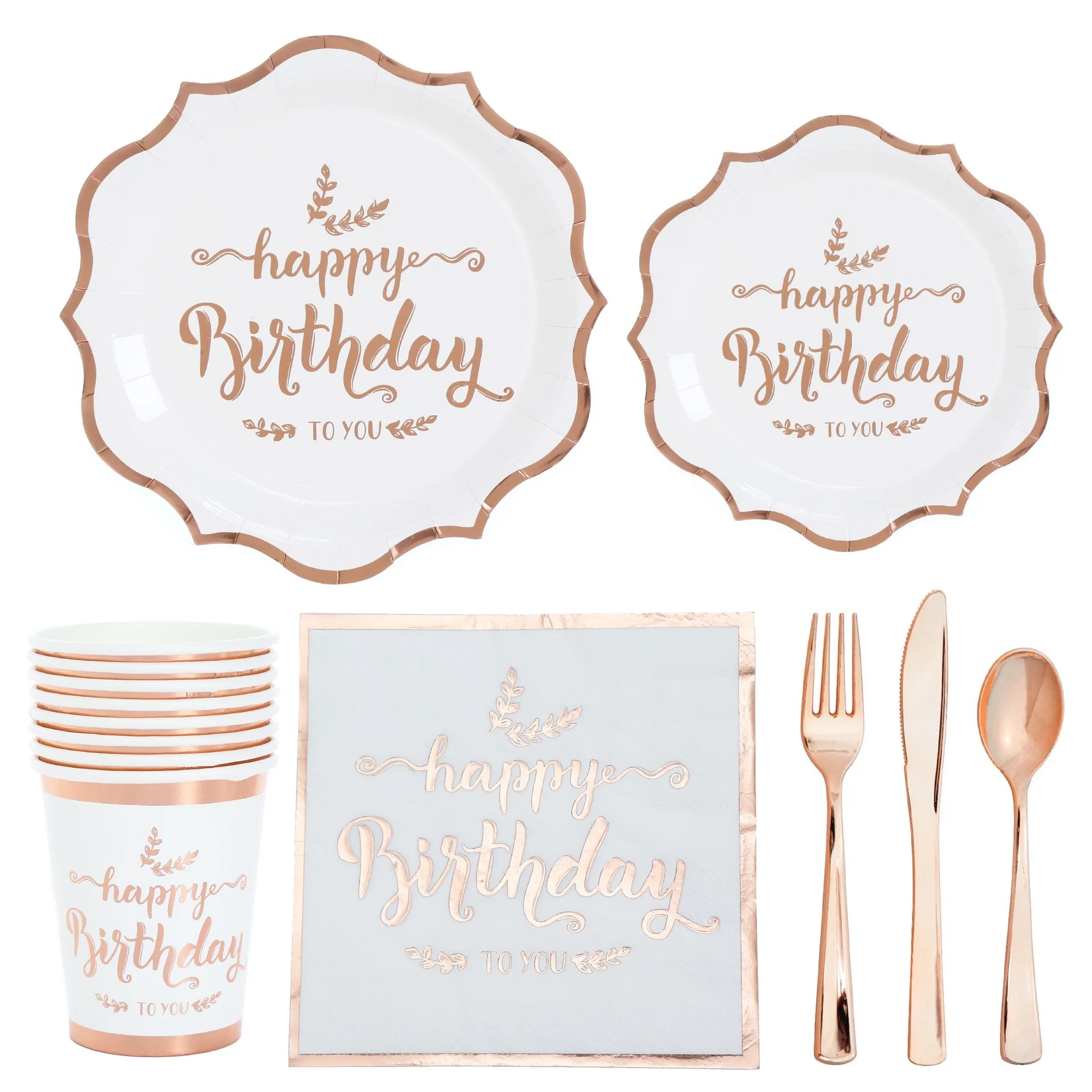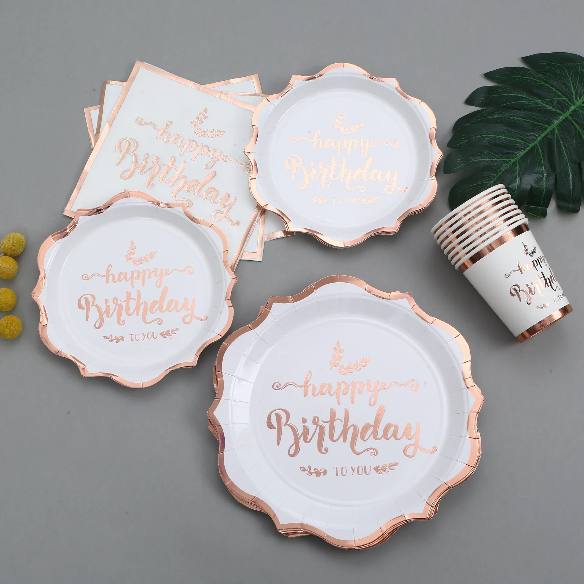 Одноразовая посуда из розового золота для украшения дня рождения, бумажные стаканчики и тарелки салфеток