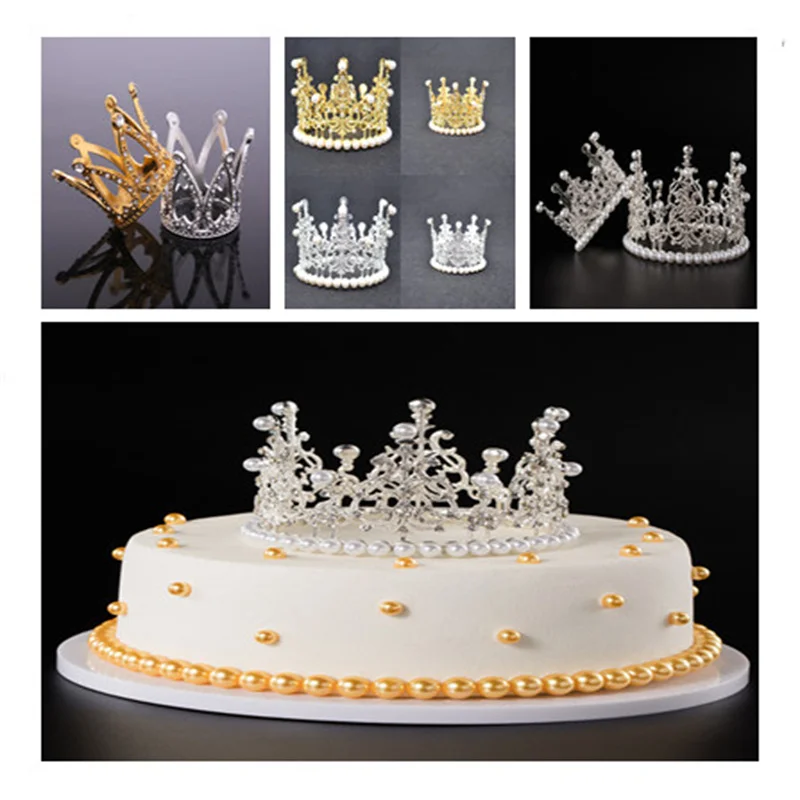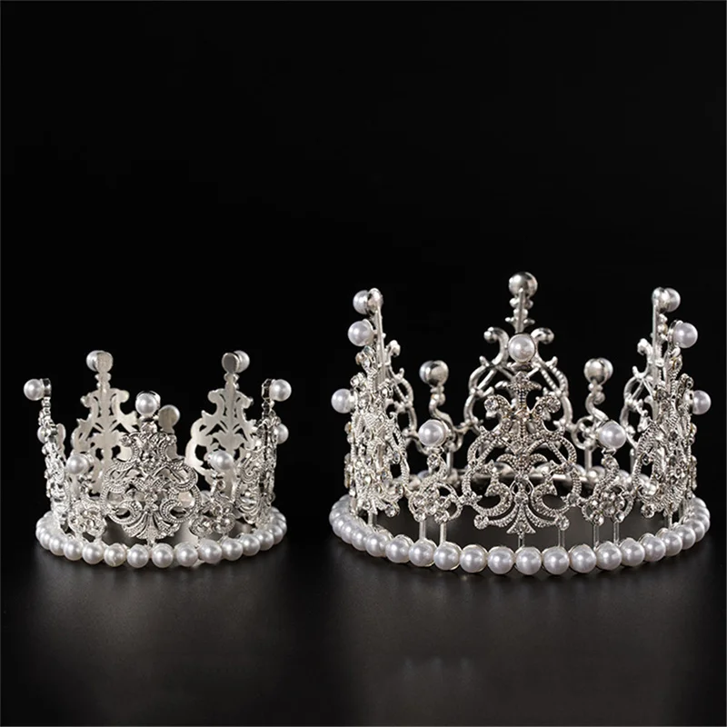 Мини Корона принцесса фигурки жениха и невесты; С украшением в виде кристаллов и жемчугом тиара детей украшения для волос, для свадьбы, для дня рождения, вечерние инструменты для украшения торта