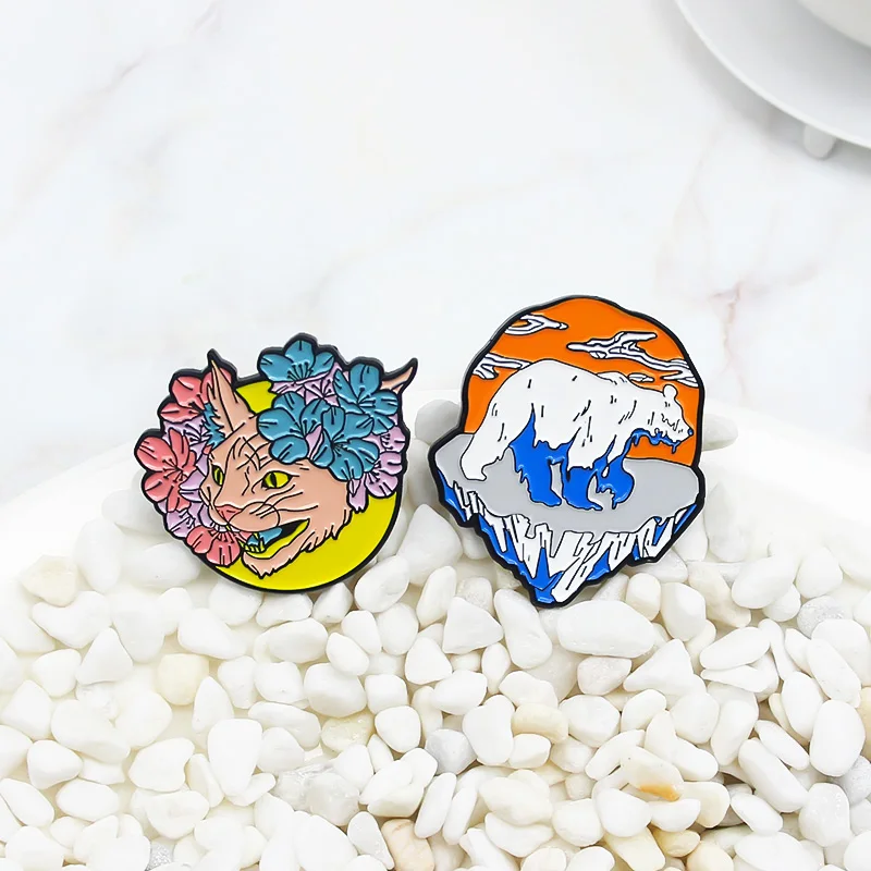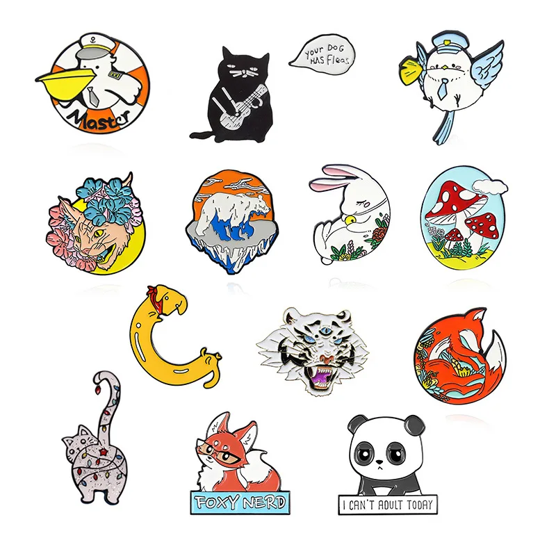 Брошь в виде панды, колбасы, собаки, кота, белого медведя, кролика, тигра, лисы, морских птиц, значок на лацкан с красным грибом, птицей, цветком