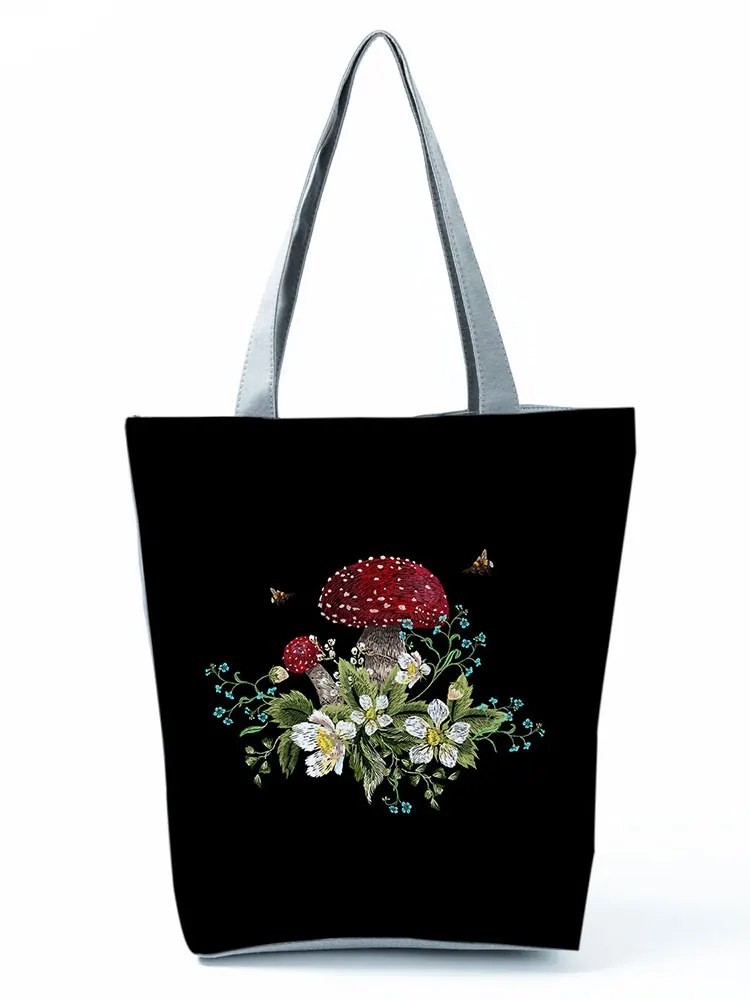 Яркие цветные черные сумки с принтом в виде грибов для женщин, вместительная простая модная сумка на плечо, Экологичная женская сумка для улицы