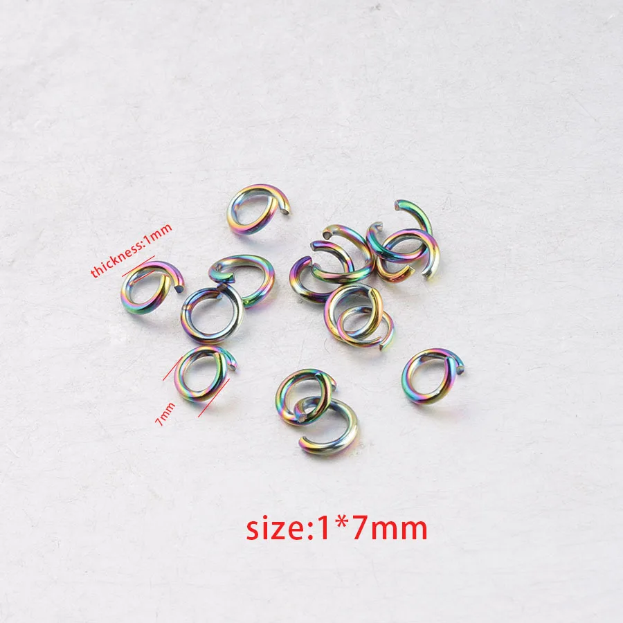 Соединительные кольца из нержавеющей стали, 100 шт.лот, 1 х 7 мм, 6 видов цветов шт.