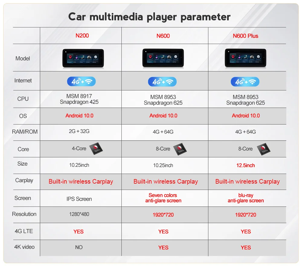 > 10,25 дюймовый емкостный экран IPS + четырехъядерный процессор/Восьмиядерный процессор + DDR3 2 Гб (4 Гб опционально) флэш-память + 32 ГБ памяти (64 Гб опционально) + Встроенный Carplay + встроенный Wifi + 4G LTE + GPS-навигация (Обновление карты) + Управление рулевым колесом + зеркальная связь + BT + Встроенный микрофон + Поддержка функции USB ADAS DVR + Европейская функция DAB + 1080P видео воспроизведение + HD 1280*480(1920*720 опционально) + Система контроля давления в шинах > Язык экранного менюРусский, английский, испанский, итальянский, французский, немецкий, китайский, эстонский, польский, филиппинский, финский, корейский, голландский,Хорватский, латышский, литовский, румынский, норвежский, португальский, японский, шведский, тайский, турецкий,Украинский, венгерский. > Поддержка услугНаша цель-продолжать усердно работать над изготовлением инновационного аппаратного и программного обеспечения автомобильного мультимедийного Проигрывателя радио, чтобы обеспечить вам этот персонализированный опыт.Мы бесплатно предоставляем обновления прошивки, программного обеспечения, навигационных карт GPS.