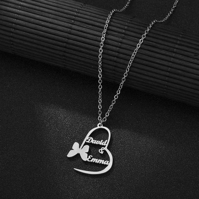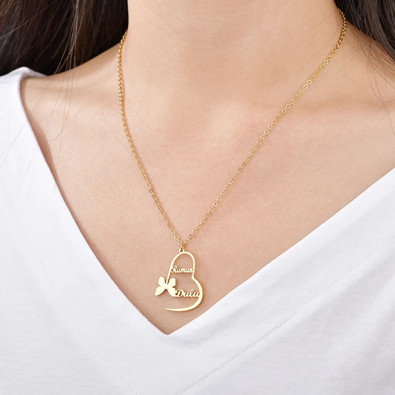 Модное персонализированное ожерелье с именем бабочки, подвеска из нержавеющей стали под заказ в форме сердца для женщин