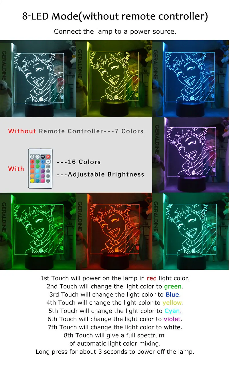 Лампа с 3d изображением, аниме, юдзюцу, Kaisen, Gojo Satoru, светод...