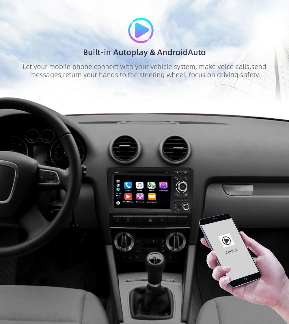 Автомобильный мультимедийный DVD-плеер с восьмиядерным процессором, 2din, Android 10, для Audi A3 8P S3 2003-2012 RS3, автомобильный радиоприемник, GPS-навигация, BT, carplay, DSP