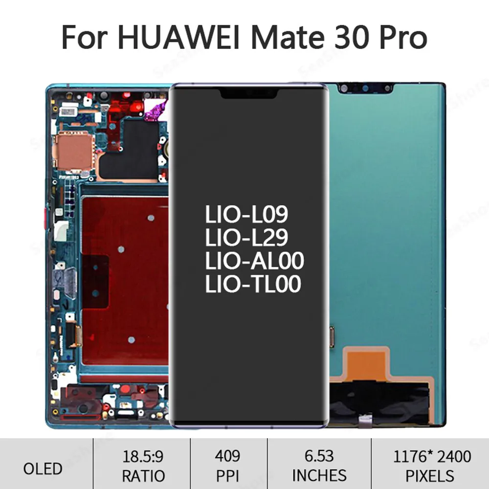 Дисплей 6,53 дюйма для Huawei Mate 30 Pro, ЖК-дисплей для Mate 30 Pro, дисплей с рамкой, сенсорный экран, замена, LIO-L09 в сборе