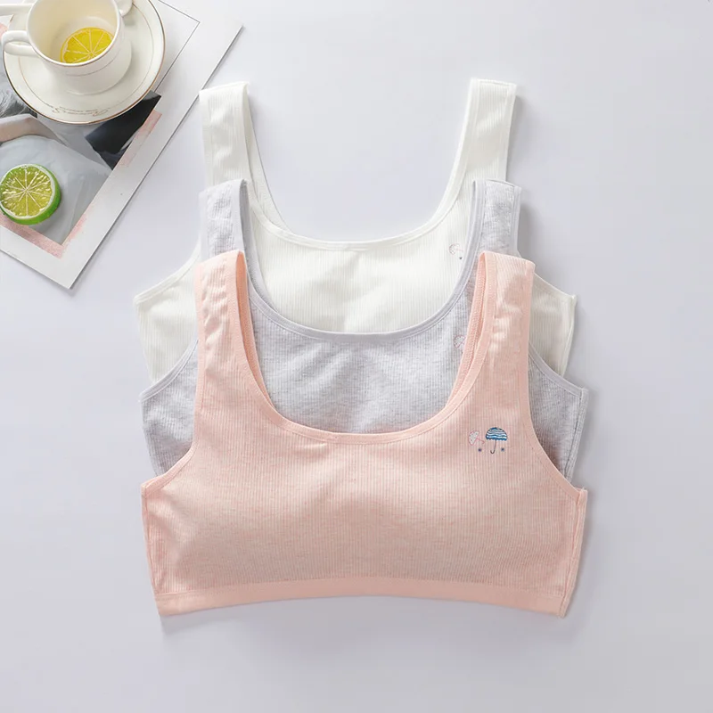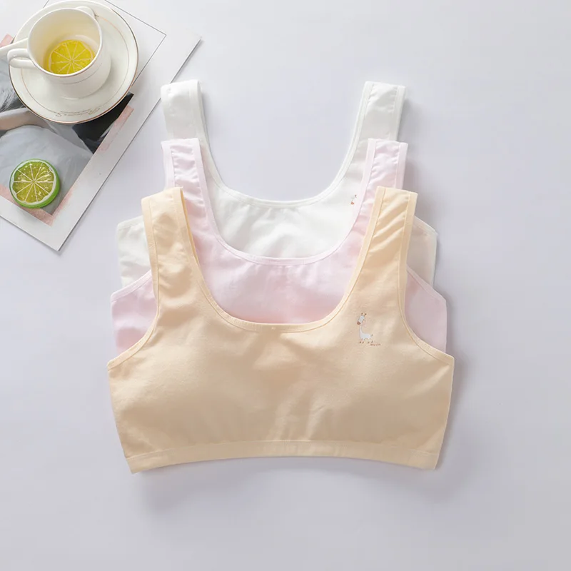 3 шт.лот, хлопковые бюстгальтеры для девочек, милые детские бюстгальтеры с поролоновой подкладкой, тренировочные бюстгальтеры для девочек-подростков, дышащее детское Спортивное нижнее белье