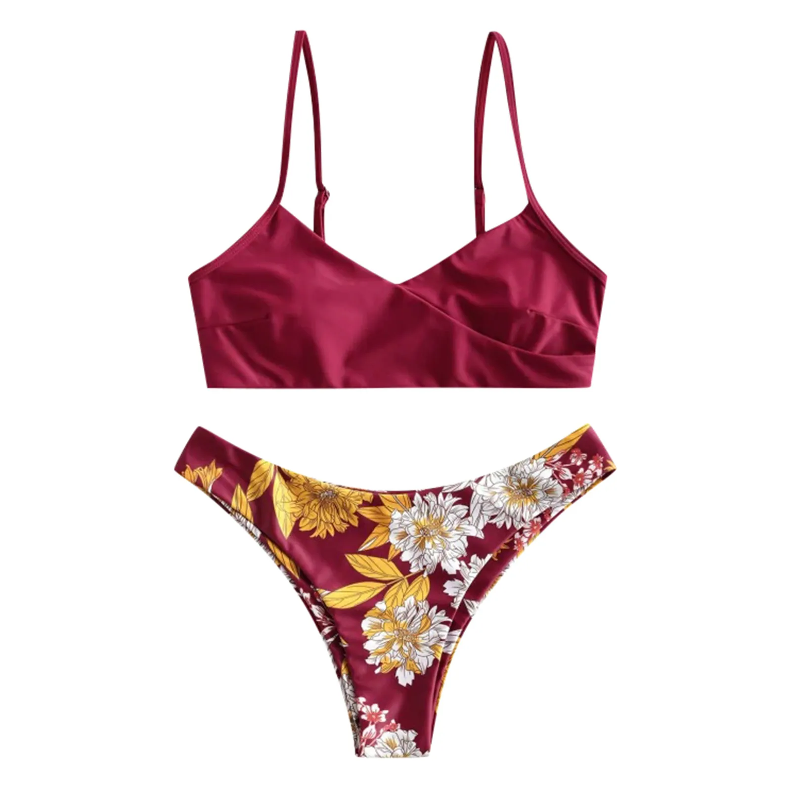 Бикини 2021 купальник Для женщин купальный костюм из двух частей Цветочный принт Разделение наборы размера плюс пляжный купальник бикини купальник женский